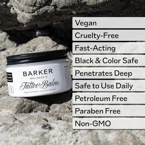 ·Natural Ingredients: Made with natural ingredients, Barker Wellness Tattoo Balm is gentle on your skin and helps to preserve the integrity of your tattoos.