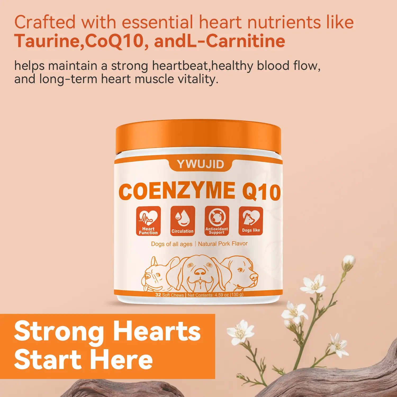 5. YWUJID Taurine Supplement for Dogs | With CoQ10 | Easy-to-Give Chews for Everyday Balance