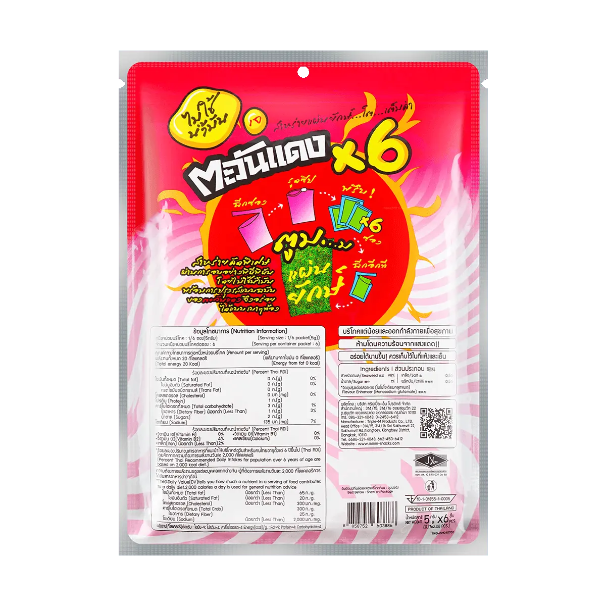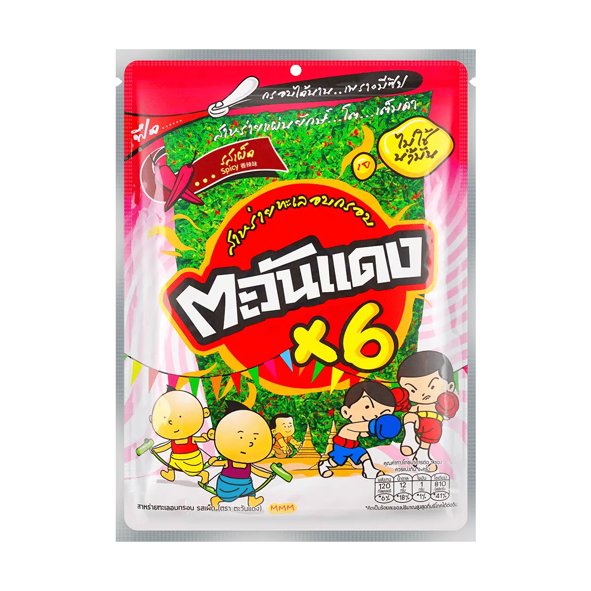 Tawandang Crispy Roasted Seaweed Snacks - Spicy Flavor, 6 Packs (30g) - Authentic Thai Nori Chips, Savory Snack for Lunchbox & Party