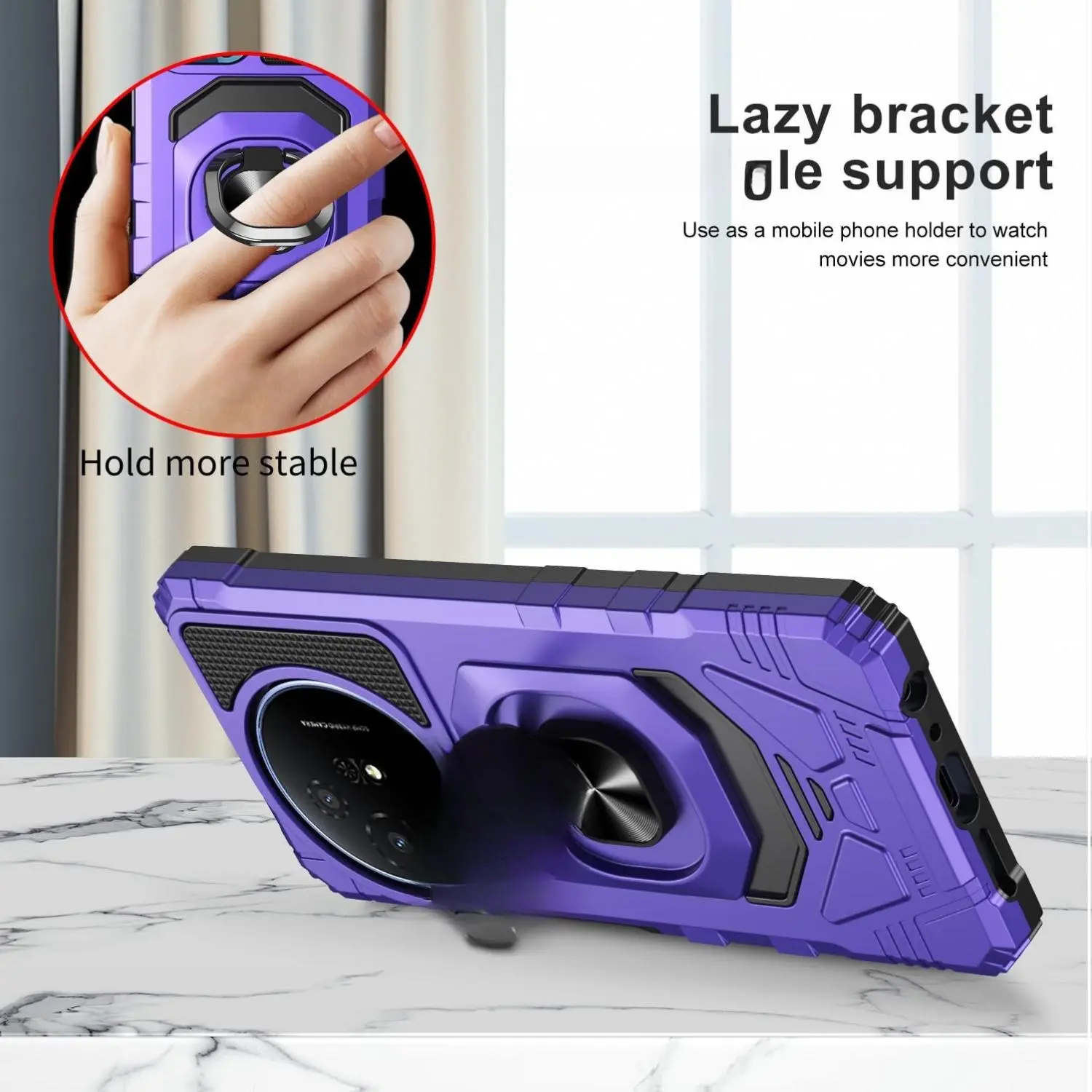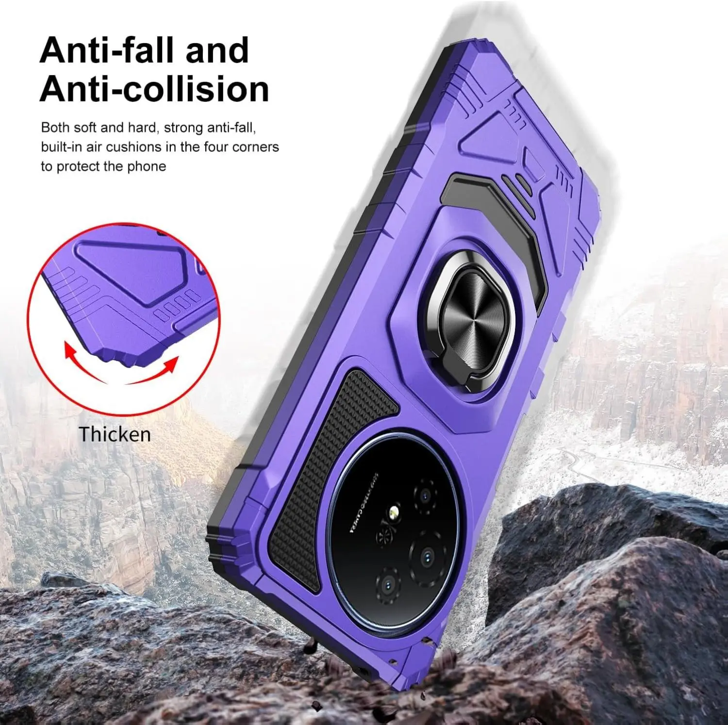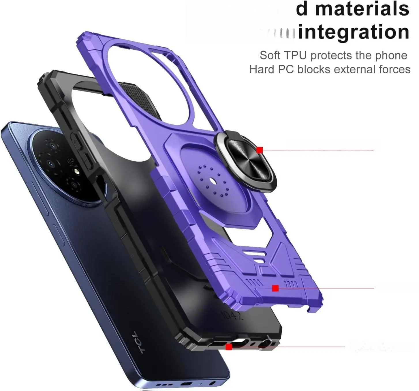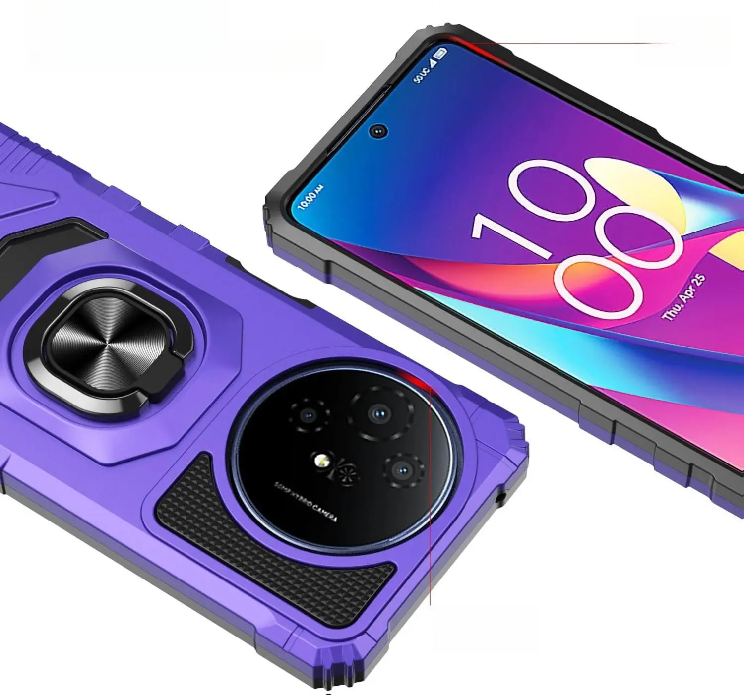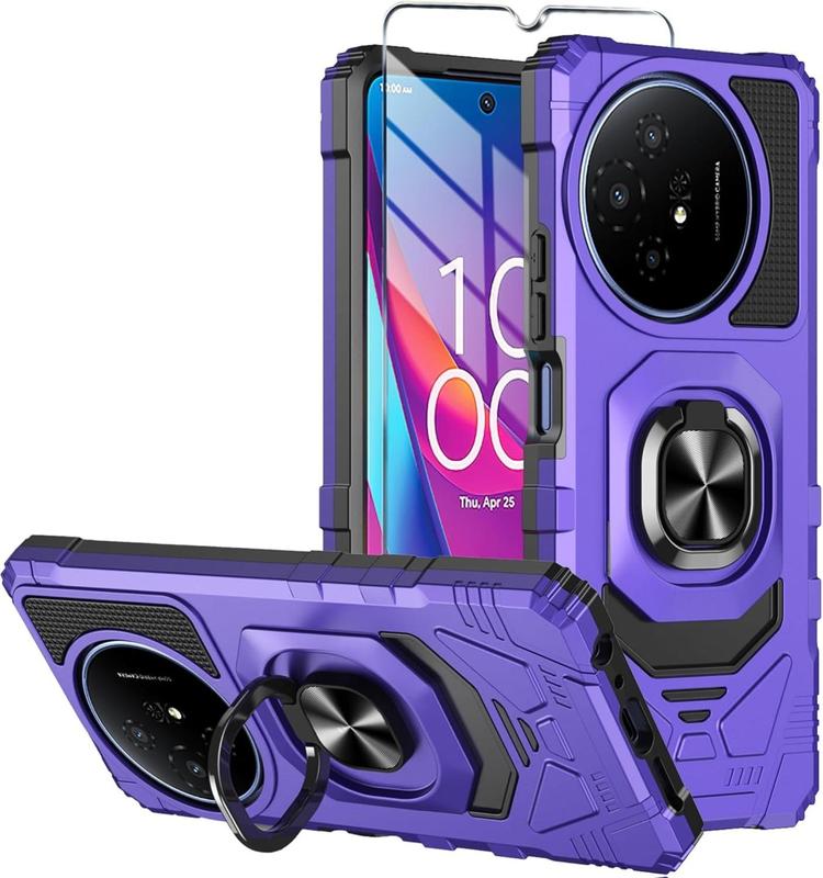 Ever worried about dropping your TCL 50 XL and cracking the screen? This rugged phone case with a built-in 9H tempered glass protector has you covered. Its military-grade heavy-duty design features a tough outer PC shell and a soft TPU inner layer to absorb shocks and prevent scratches. The included tempered glass screen protector keeps your display crystal clear and fingerprint-free without sacrificing touch sensitivity. Plus, the metal ring kickstand lets you watch videos hands-free with multiple adjustable angles, and it doubles as a secure grip so your phone won’t slip from your hand. Anti-slip grooves on the sides and back provide extra grip to prevent accidental drops. Designed exclusively for the TCL 50 XL series, this purple case combines style and protection seamlessly. Inside the box, you’ll get the case with the pre-installed tempered glass protector. Ready to keep your phone safe and stylish? Grab this durable case and enjoy peace of mind wherever you go!