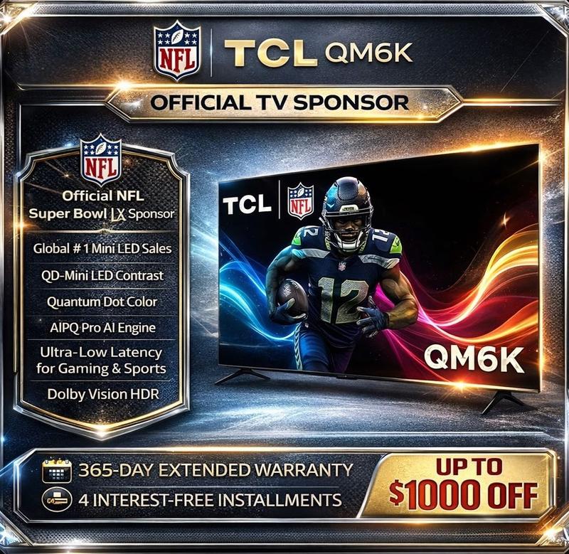 The TCL QM6K QD-MINI LED TV series delivers superior contrast, rich color, and ultra-smooth motion. Designed for streaming, gaming, and sports, it combines Mini LED backlighting with Quantum Dot technology to achieve exceptional brightness and vivid color performance.
