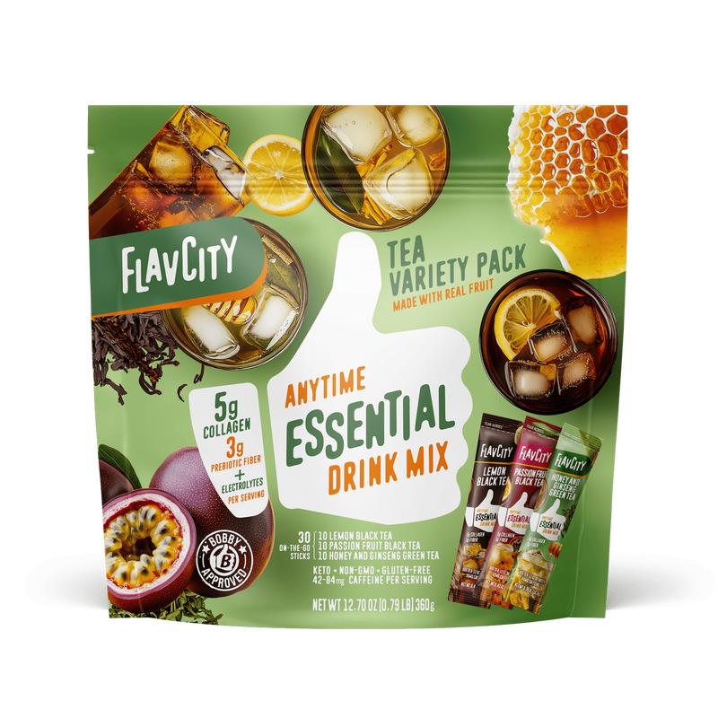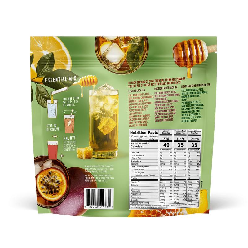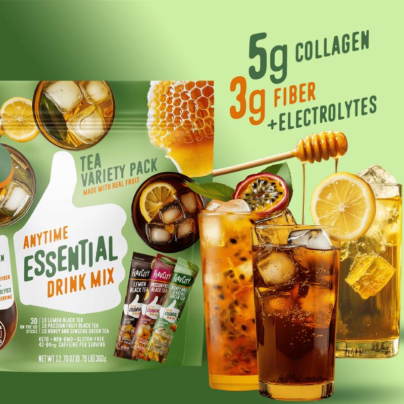 This variety pack features three vibrant blends: zesty Lemon Black Tea, tropical Passionfruit Black Tea, and smooth Honey & Ginseng Green Tea. Flavored with real fruit, it's a feel-good way to energize your day—no kettle required.