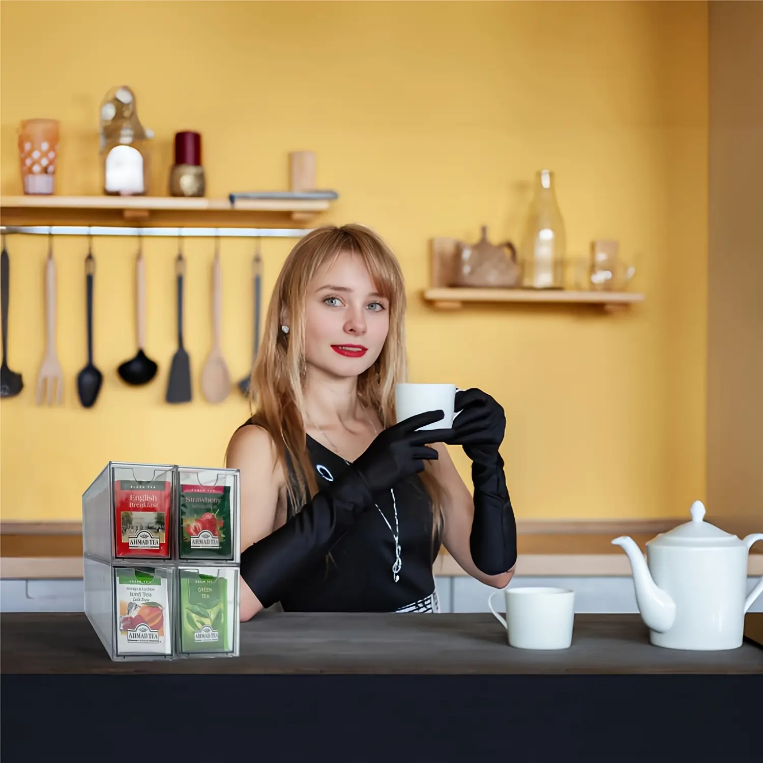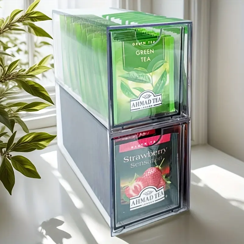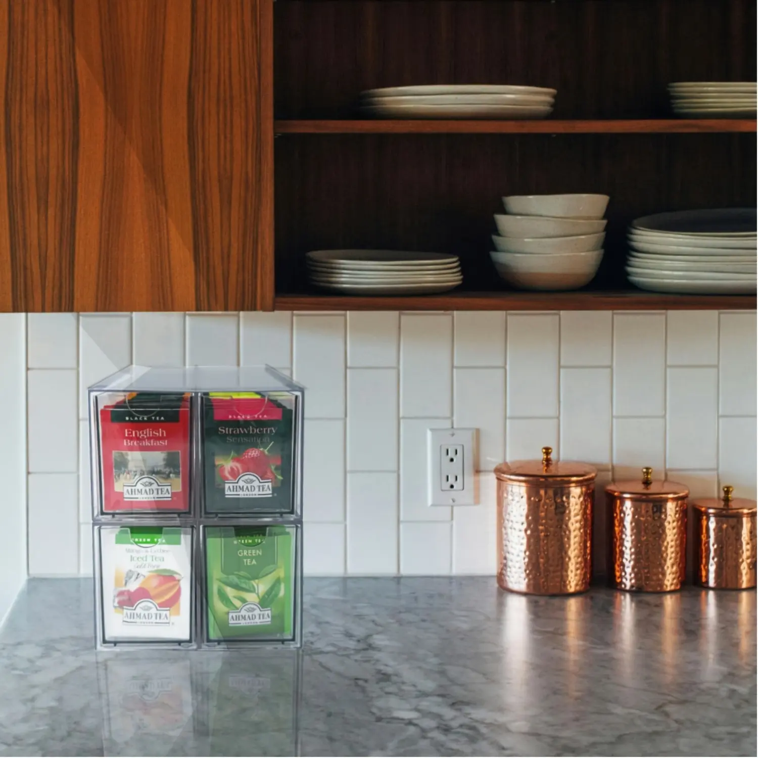 2/4pcs Tea Bag Drawer Organizer - Clear Plastic Drawer Tea Bag Holder, Stackable And Portable for Kitchen Refrigerator Coffee Bags And Snacks - Modern Design for Countertop Or Cabinet Boxes