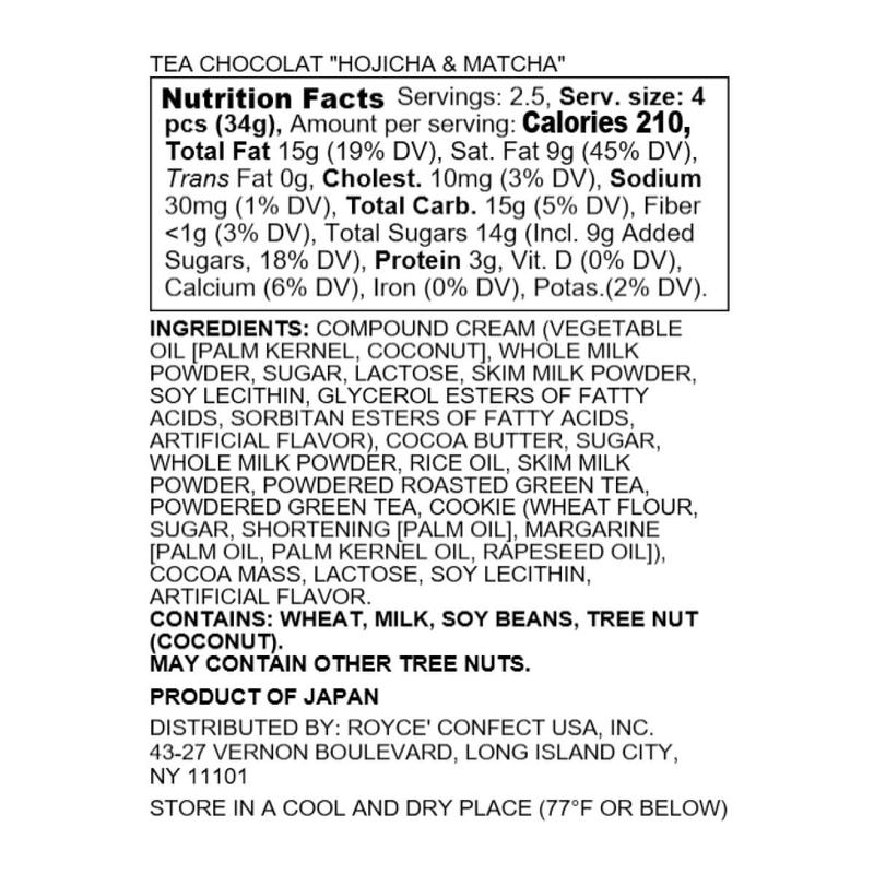 Embark on a delightful journey with our exclusive collection featuring the exquisite flavors of two types of green tea chocolates, "Hojicha" and "Matcha." Indulge your senses with 5 pieces of meticulously crafted milk chocolates, infused with the rich essence of Hojicha tea and generously filled with Hojicha cream and delectable cookie crunch. Additionally, savor the sophisticated taste of 5 Matcha-flavored white chocolates, boasting a velvety green tea cream center and a satisfying cookie crunch. This thoughtfully-curated box brings you a total of 10 chocolates, each a harmonious blend of premium ingredients, ensuring an authentic and indulgent experience. Elevate your chocolate moments with the unique fusion of Japanese tea flavors in every delightful bite.