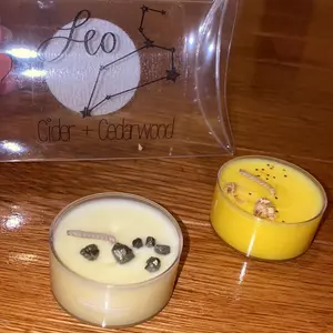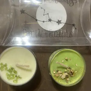 It has to be said. The scent is amazing!!!! I wasn’t expecting a beautiful scent. The tea lights are beautiful; 1 has peridot sprinkled on top & the other has beautiful garnish. Both smell wonderful. I think I want a big one :) This is my 1st candle from this shop and I’m impressed!