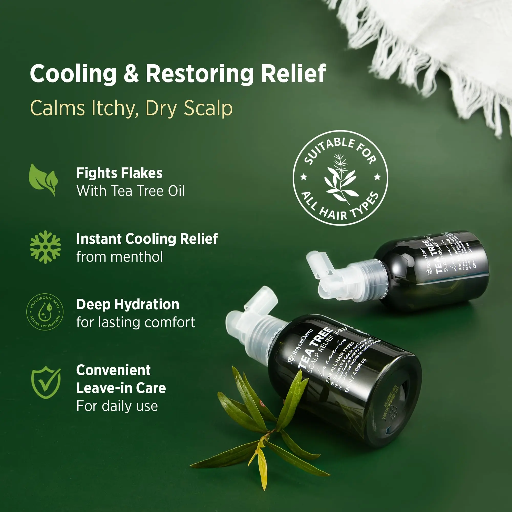 Infused with tea tree oil and salicylic acid, this spray calms irritation, reduces flakes, and promotes a balanced scalp environment.