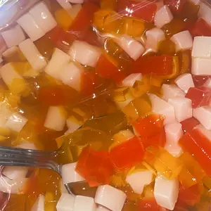 The Tea Zone Assorted Yogo Jelly comes with red, white, and orange jellies; the mix of vibrant colors will make your beverage look even more stunning. Add this jelly-like topping to any of your milk teas, flavored teas, or blended drinks - it will add a sense of visual pleasure with ease. It could also be an alternative for the popping pearls or traditional boba.