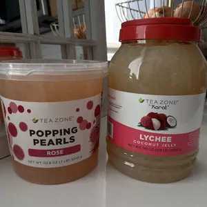 Tea Zone Strawberry Coconut Jelly can be added to any beverage or dessert from a smoothie to putting on top of ice cream. It provides any recipe with a sweet tropical flavor and will treat you with a sweet tropical flavor in whatever you add it to.