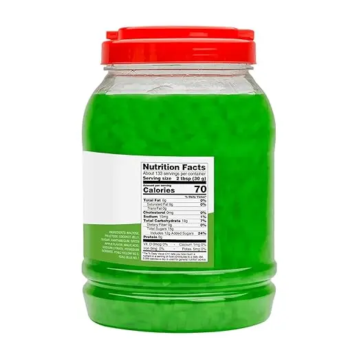 Ingredients: Coconut Jelly, Maltose, Fructose, Sugar, Malic Acid, Sodium Citrate, Xanthan Gum, Potassium Sorbate, Green Apple Flavo