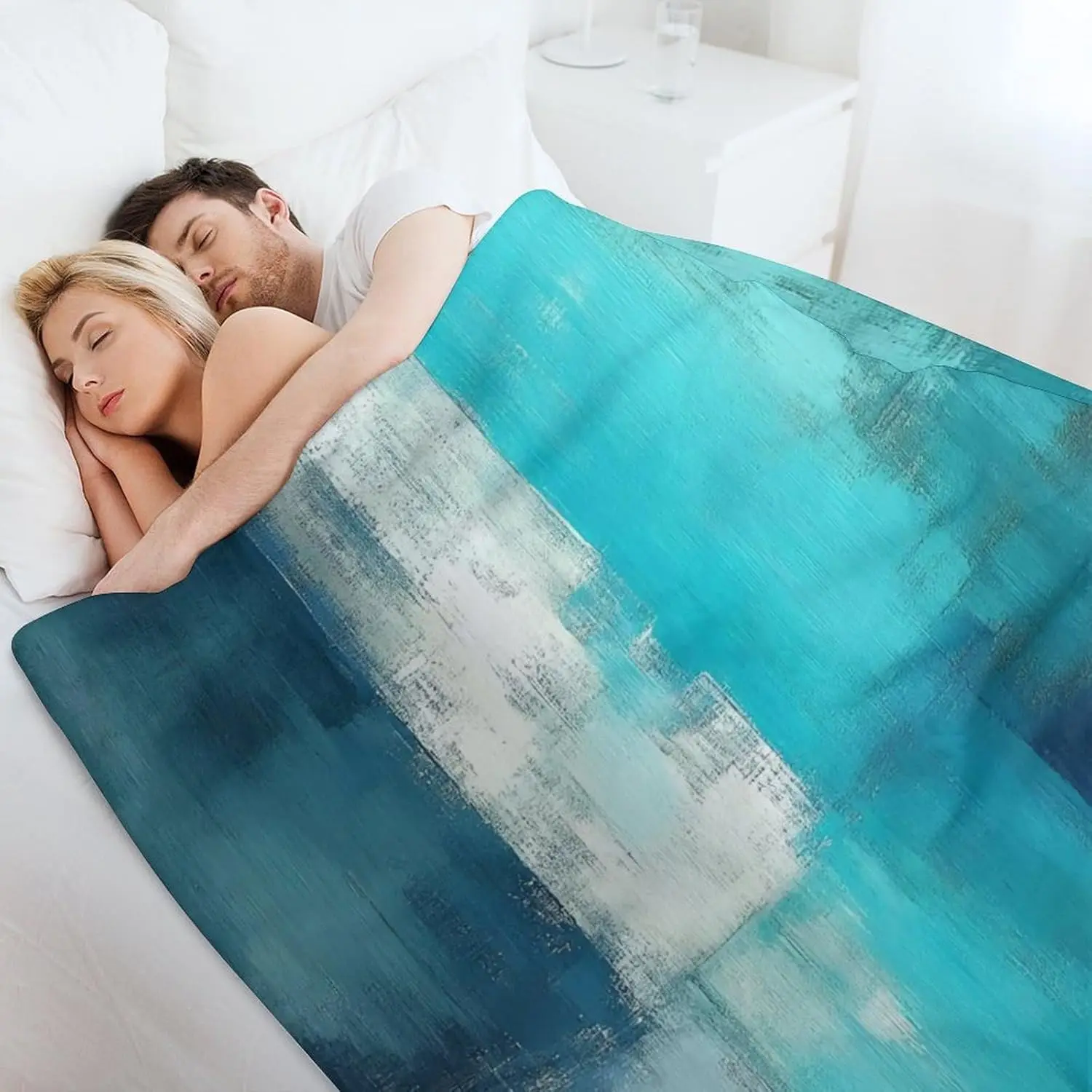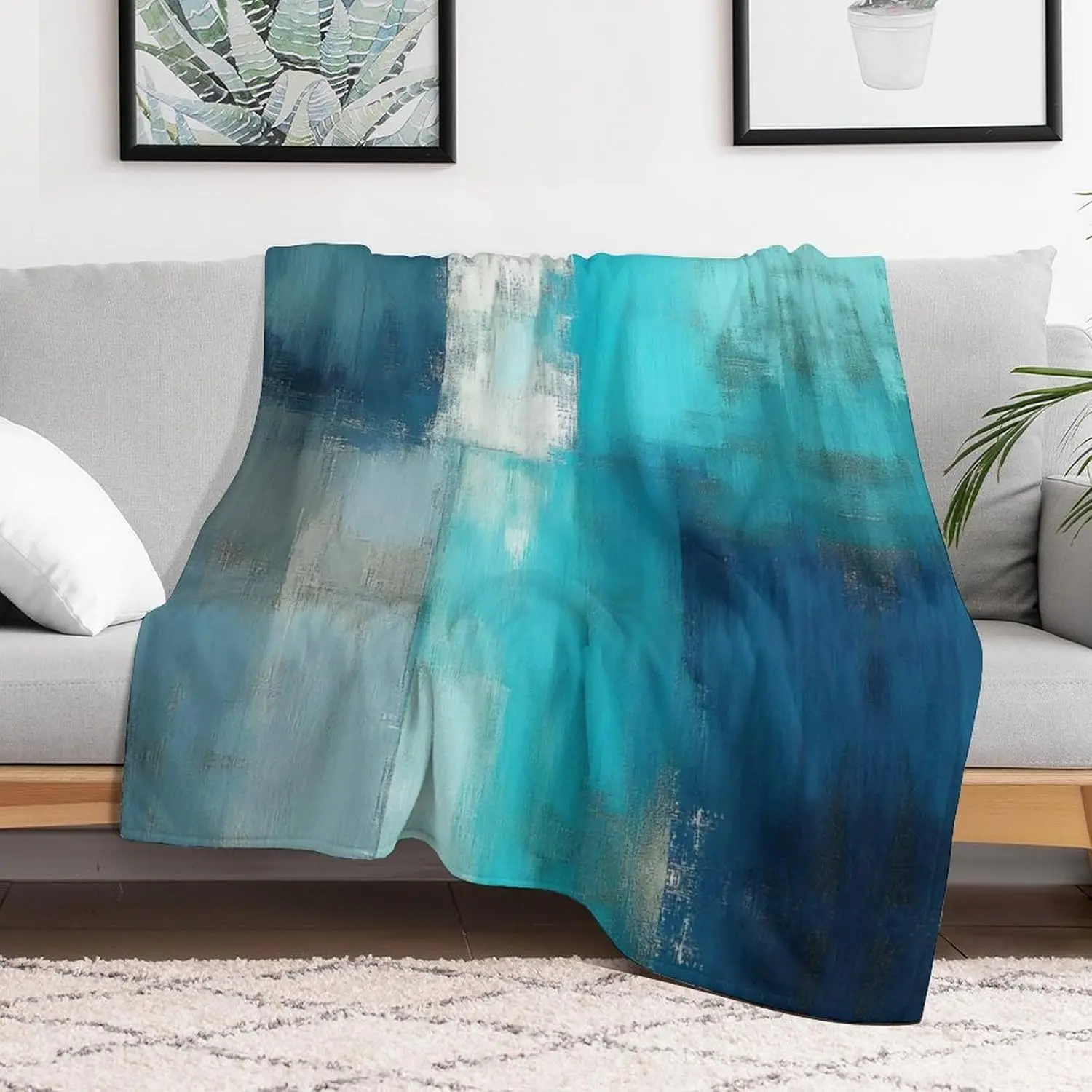 5. Teal Grey Throw Blanket Flannel Turquoise Abstract Art Painting Lightweight Soft Fuzzy Cozy Couch Bed Blanket Fall Winter Decor Christmas Birthday Gifts Kids Adult