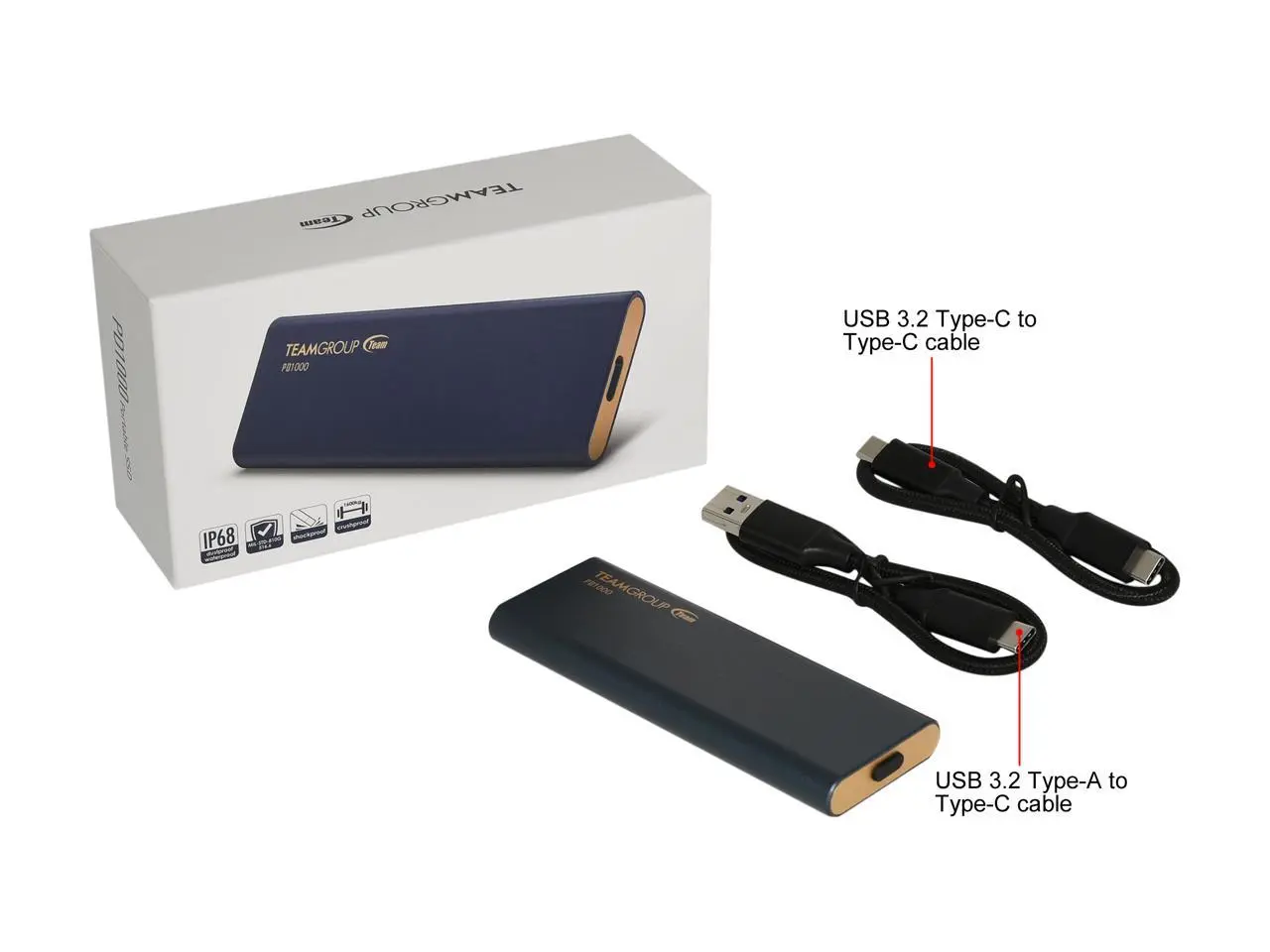 Team Group PD1000 IP68 2TB Portable SSD USB3.2 Gen 2, Read/Write 1000MB/s (T8FED6002T0C108)