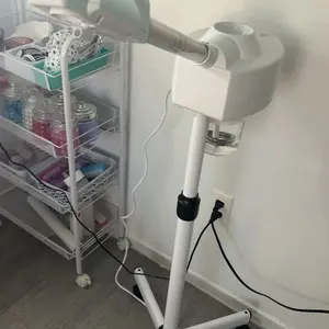 Designed with the practitioner's convenience in mind, the steamer includes a rotatable hot spray nozzle and is mounted on a height-adjustable stand. The stand boasts a four-legged wheeled base that ensures stability while allowing for easy mobility around the salon. Its elegant design not only looks appealing but also integrates seamlessly into any professional setting.