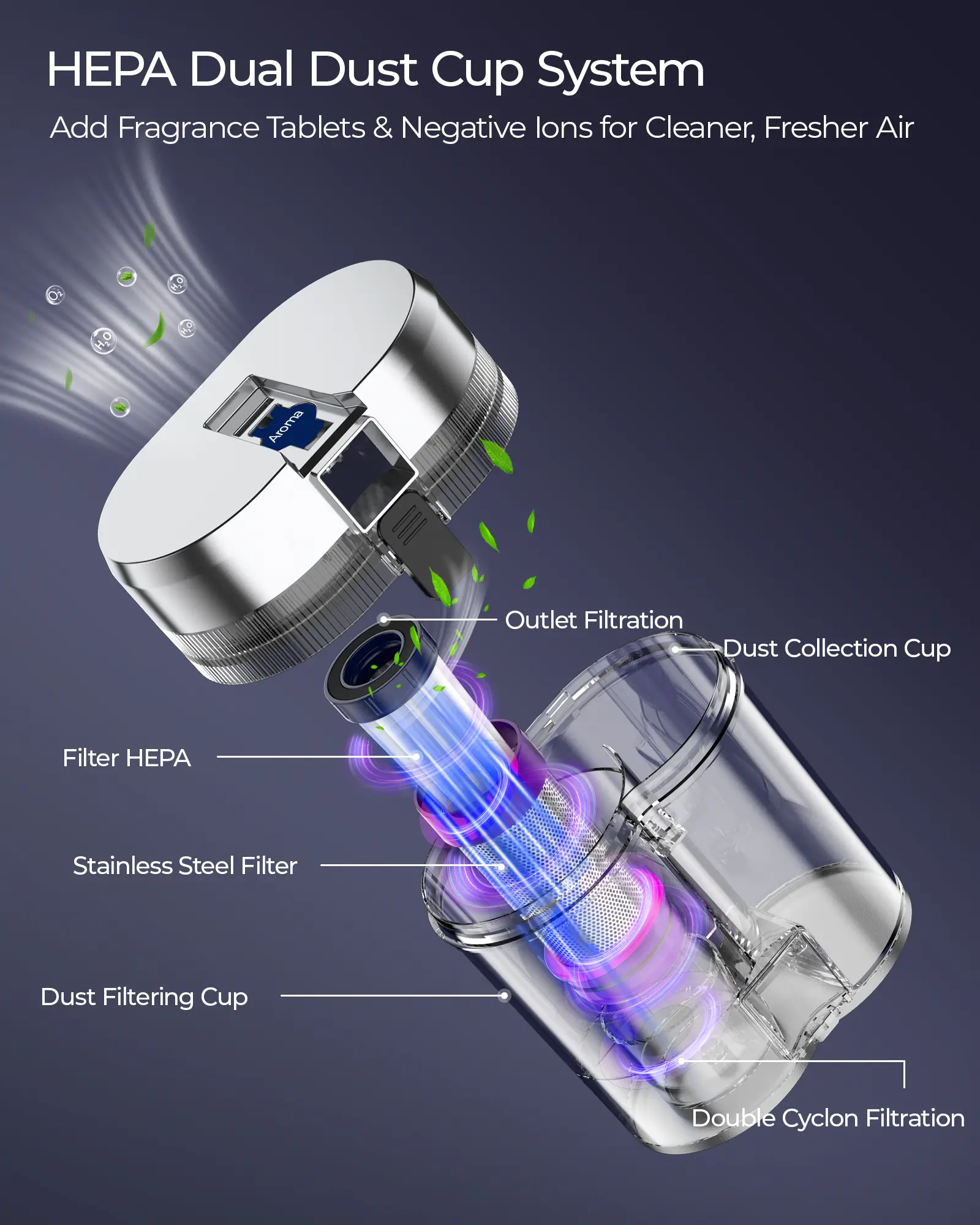 HEPA Micro-Filter & Dual Cups for Clog-Free Cleaning: