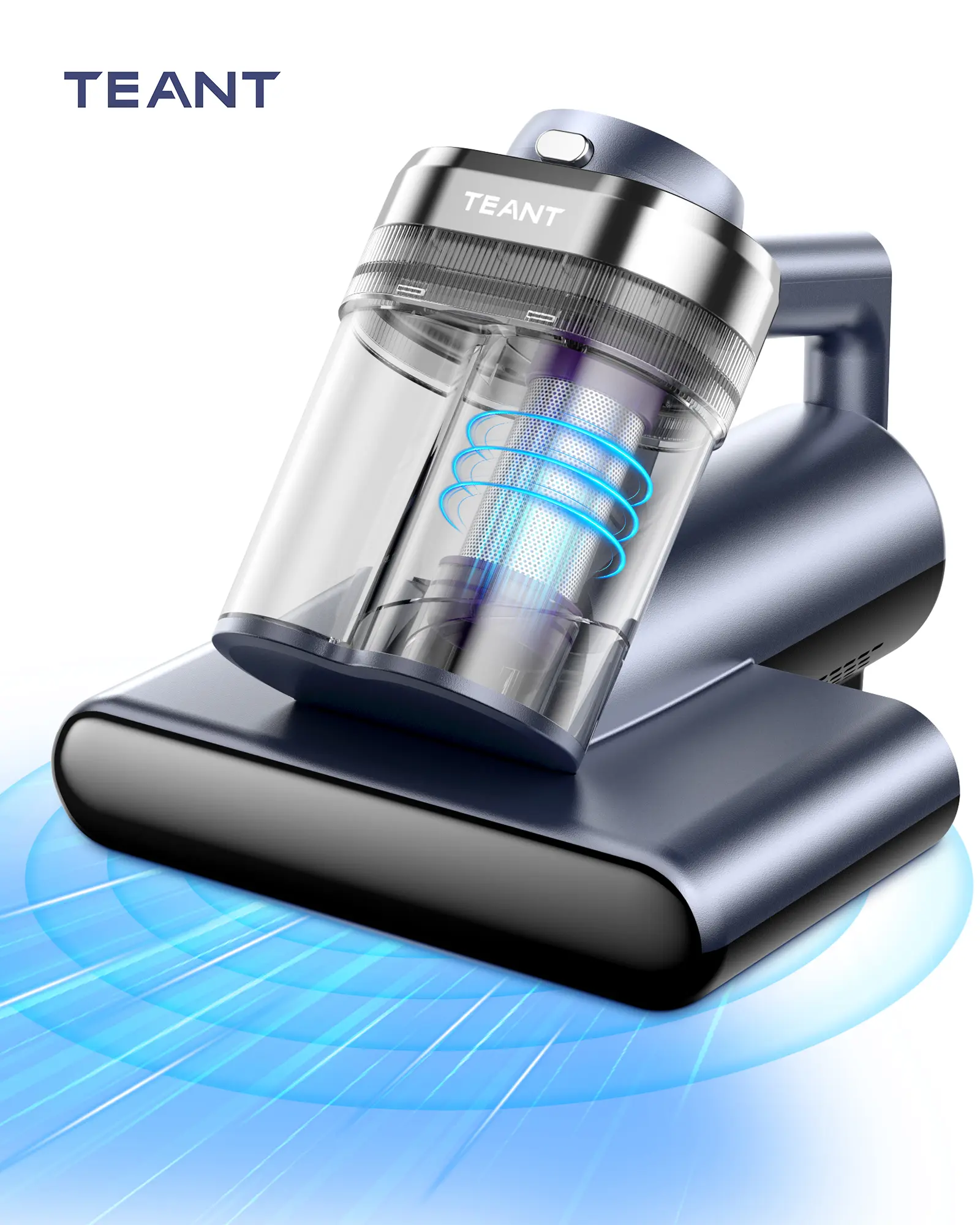 Teant bed vacuum cordless features HEPA micro-filtration to trap fine dust, hair, and debris, 0.5L dual-cup design separates hair from dust to reduce clogging and blowback; finished with a durable stainless-steel filter—easy to empty, built for daily use