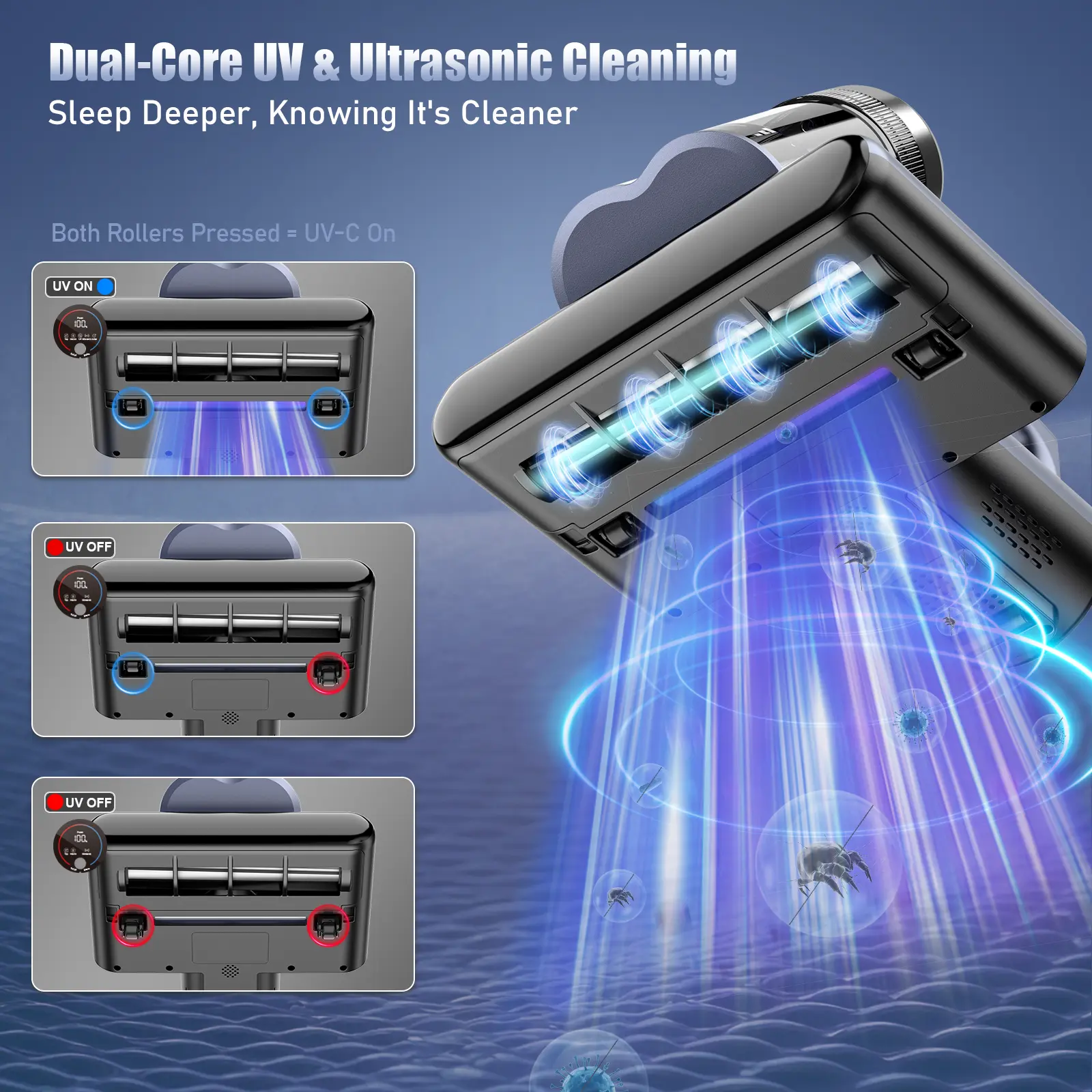 UV-C Sterilization: Medical-grade UV-C light kills 99.9% of bacteria and dust mites on surfaces