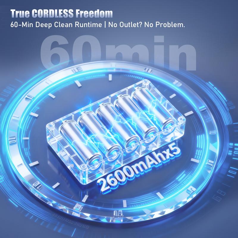 Cordless Design for Total Mobility: No cords, no plugging in, just grab and clean