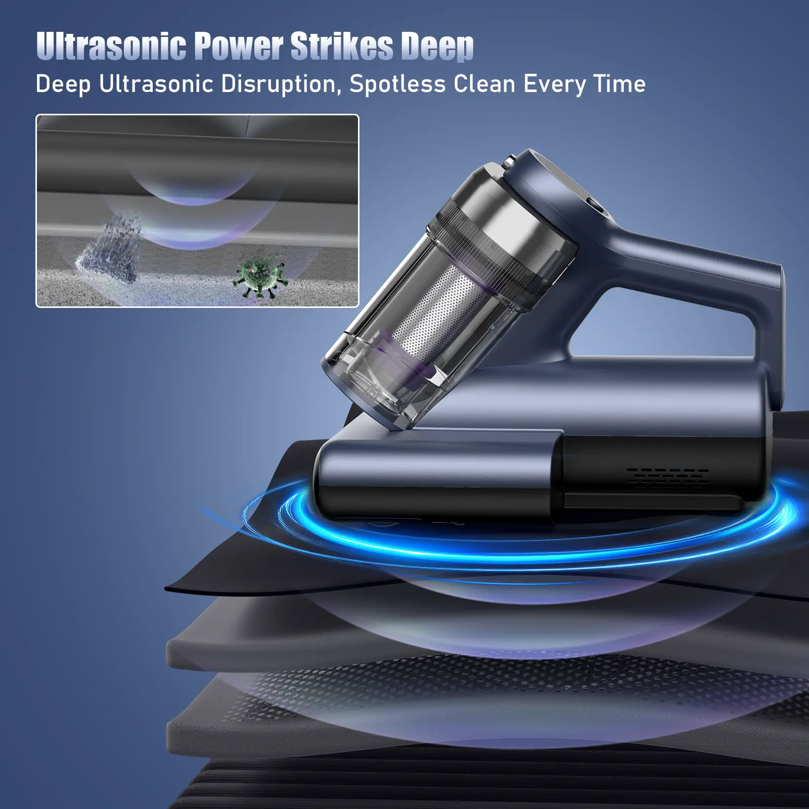 Multi-function Ultrasonic Deep Cleaning: Capture small particles Remove skin flakes Absorb dust