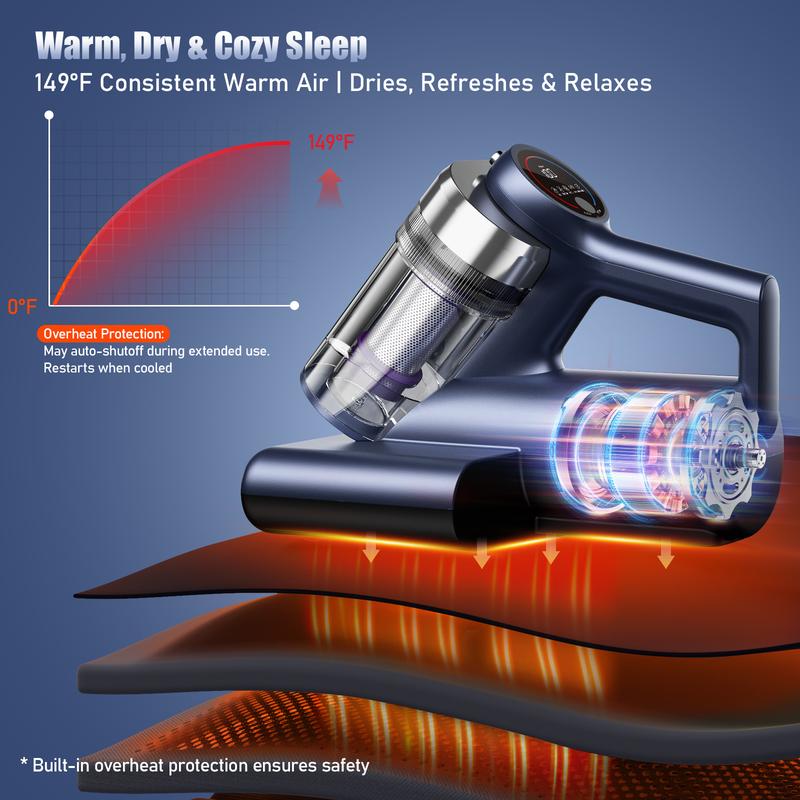 149°F Thermal Cleaning: Patented 149°F hot air technology eliminates mites at all life stages by breaking down proteins