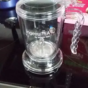 This really works good. I did think it was glass, but it is a really nice plastic. I love it! It has measuring lines for how many ounces of water. Put in dried tea and boiled water let steep. When you place it on your cup, it immediately releases.