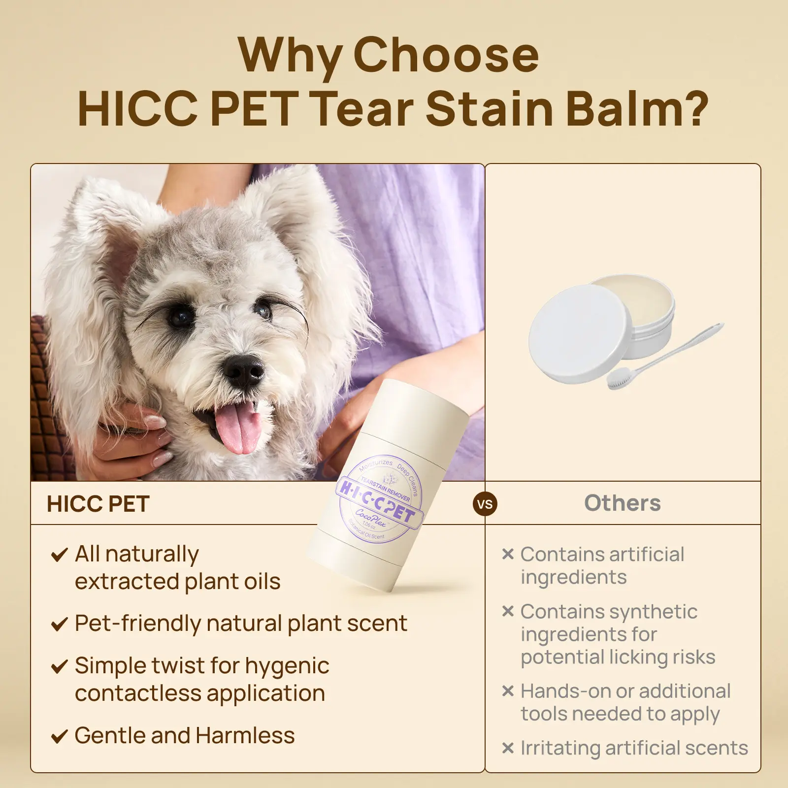 ·HICC Pet Tear Stain Remover gently lifts tear stains while protecting the delicate eye area.