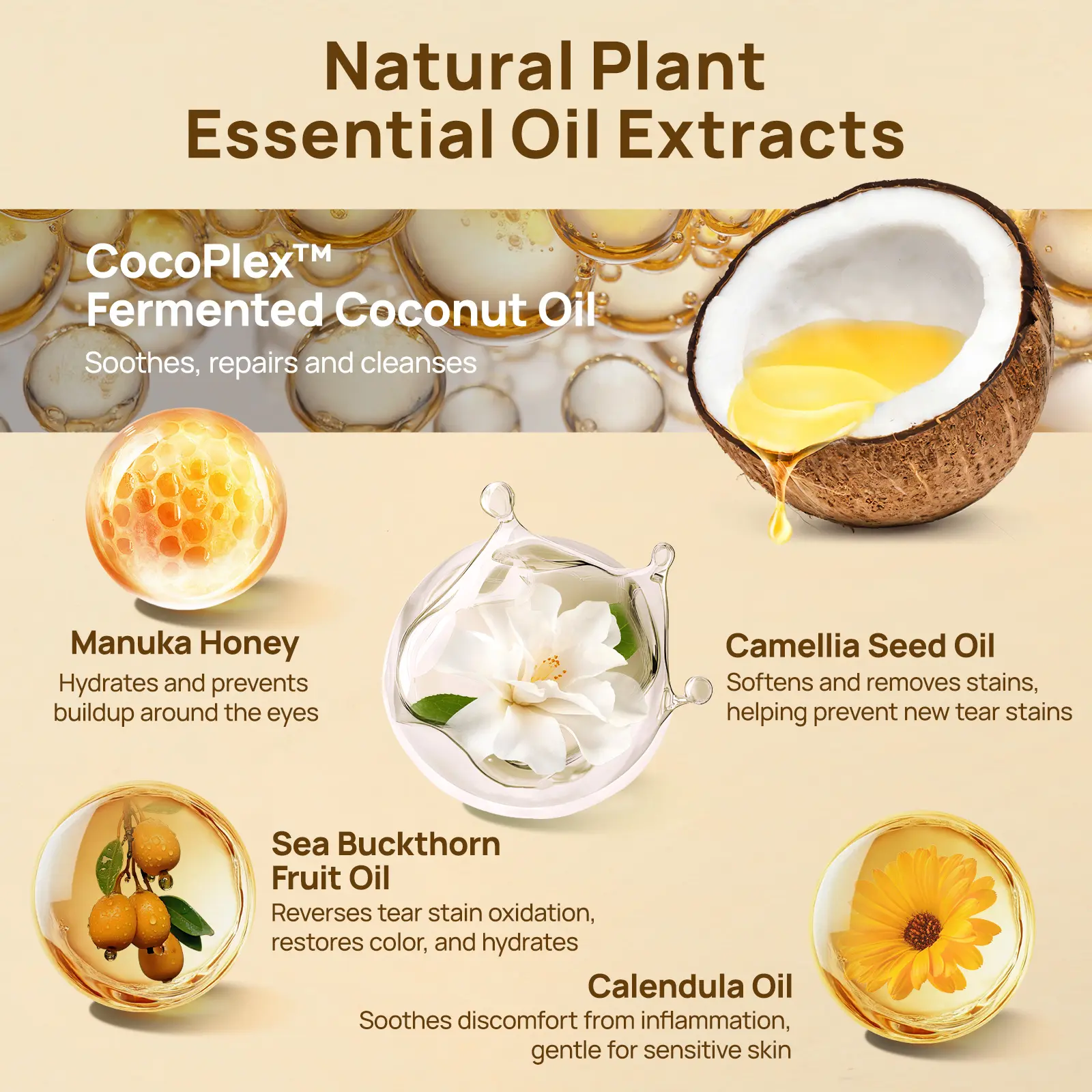 ·Infused with CocoPlex Fermented Coconut Oil and Calendula Officinalis Flower Oil, it cleanses, soothes, and hydrates the area around your pet's eyes for a brighter, healthier look.