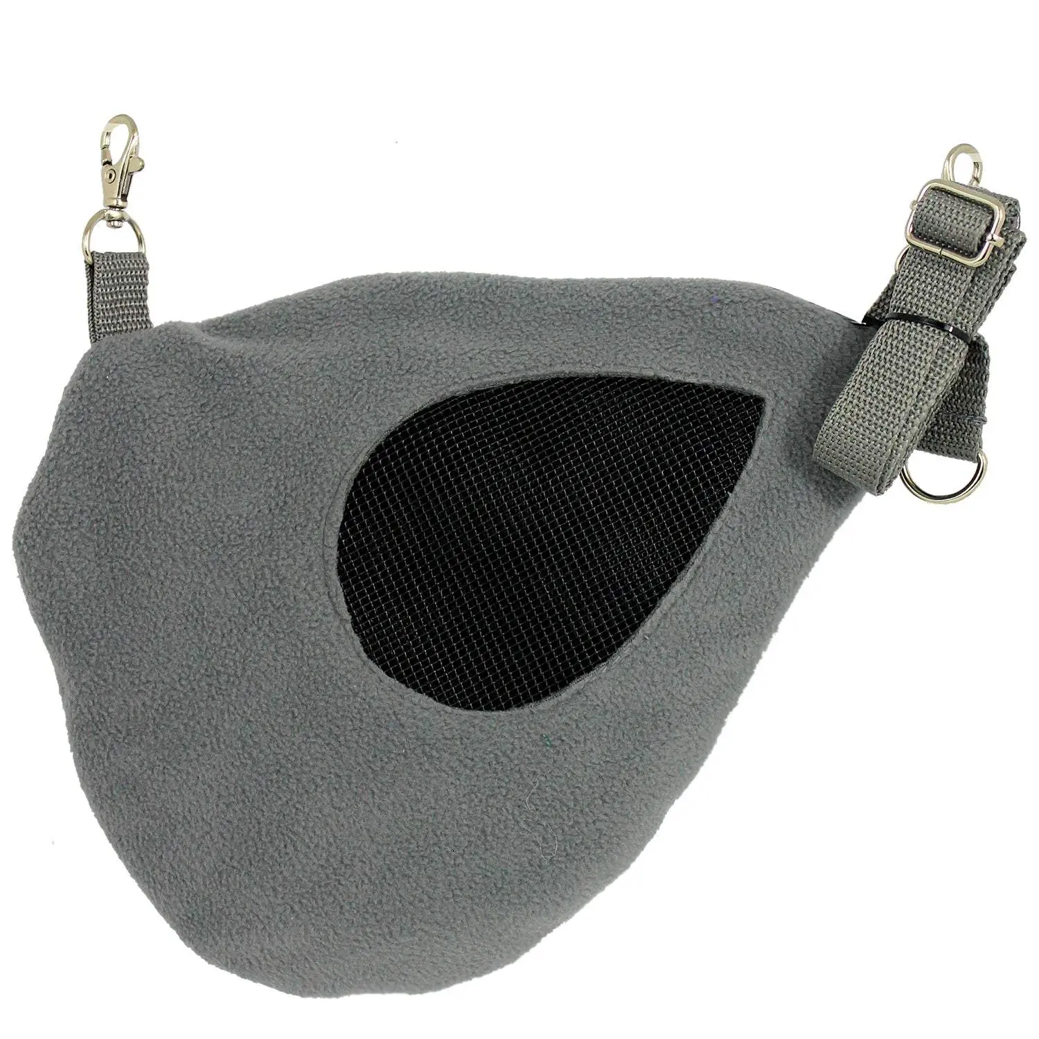 Exotic Nutrition's Teardrop Carry Pouch from the Hangouts collection can hang inside the cage or clip directly onto the adjustable carry strap. Made with double-layered polar fleece material, this 2-in-1 pouch provides the perfect way to bond with your pet! Ideal for sugar gliders, squirrels, marmosets, and other nesting animals.