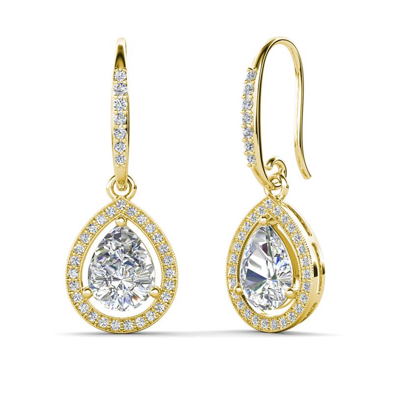 Isabel 18k White Gold Plated Halo Teardrop Earrings with Simulated Diamond Crystals