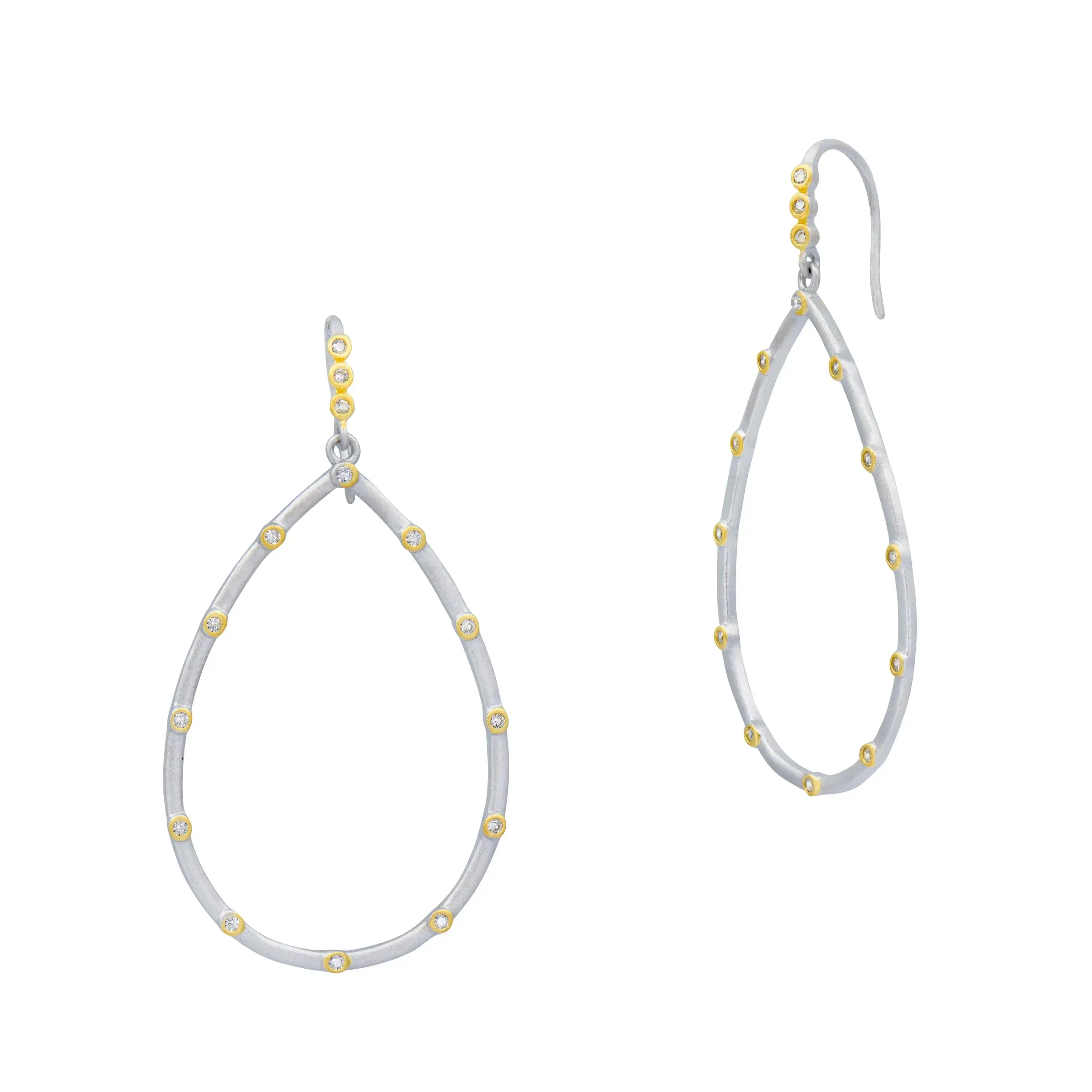 These earrings will quickly become the pair that you wear every day over and over again, exuding understated elegance. The platinum finish shines and signature gold bezel set stones catch every light for an illuminated glow.