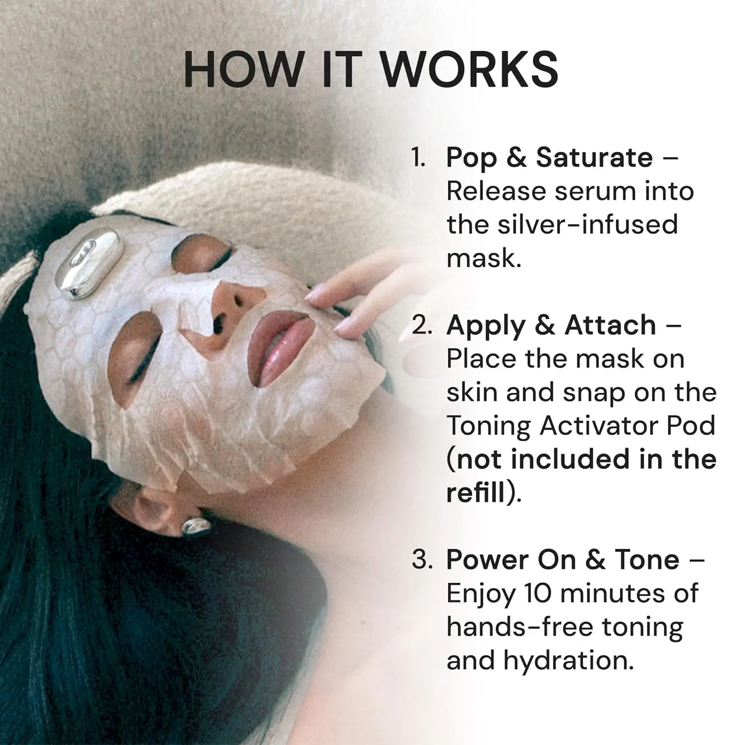Already have the Toning Activator Pod? Keep the results going with our SilverFusion Refill Set — four advanced sheet masks pre-loaded with anti-aging conductive gel, ready to pair with your device.