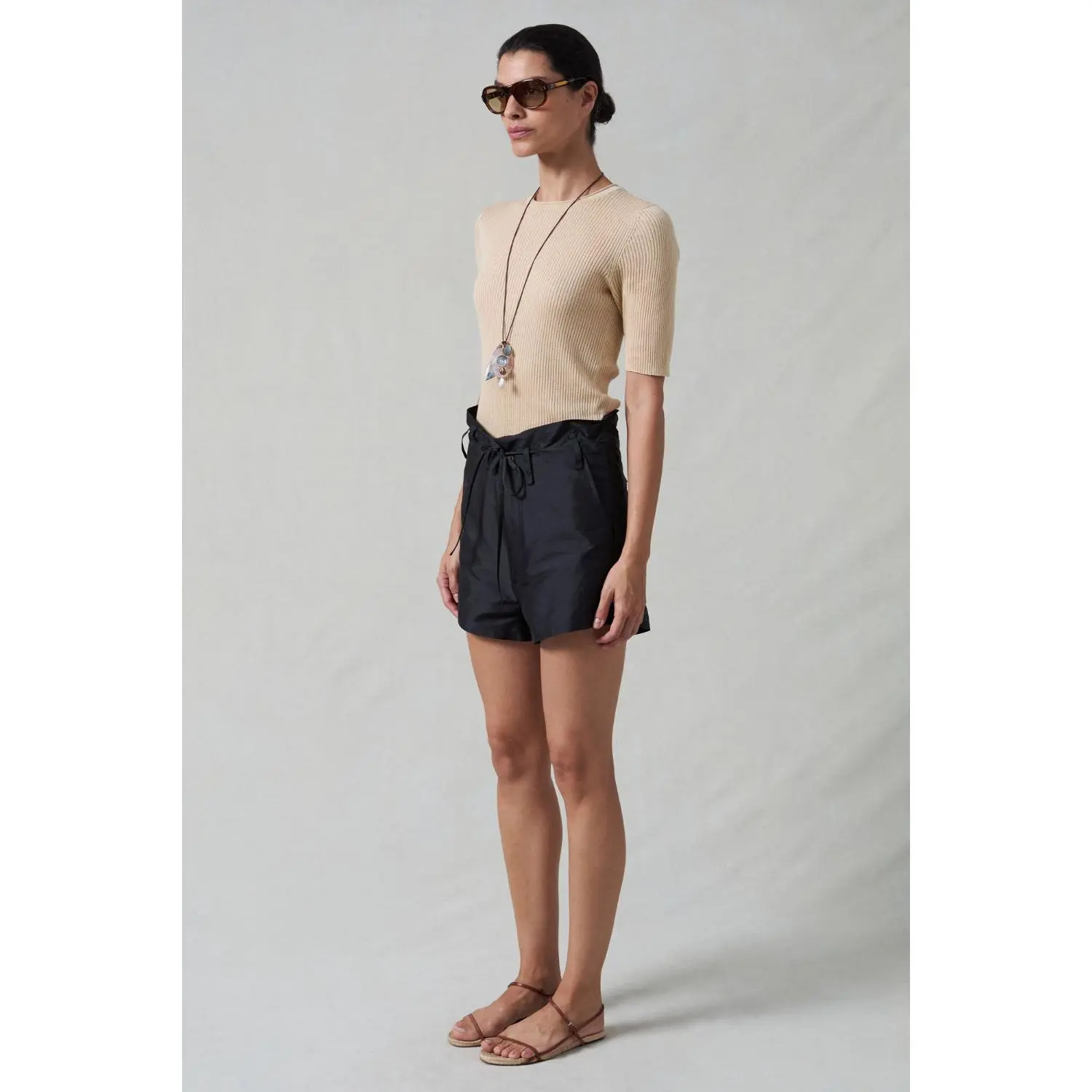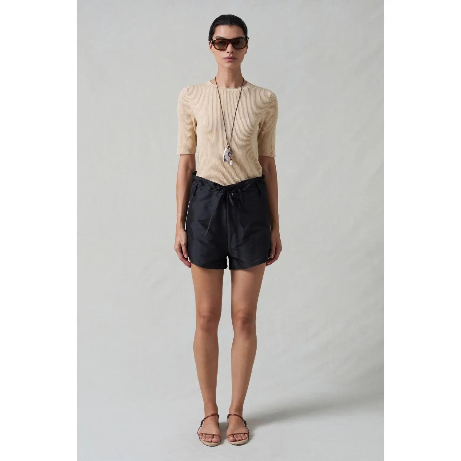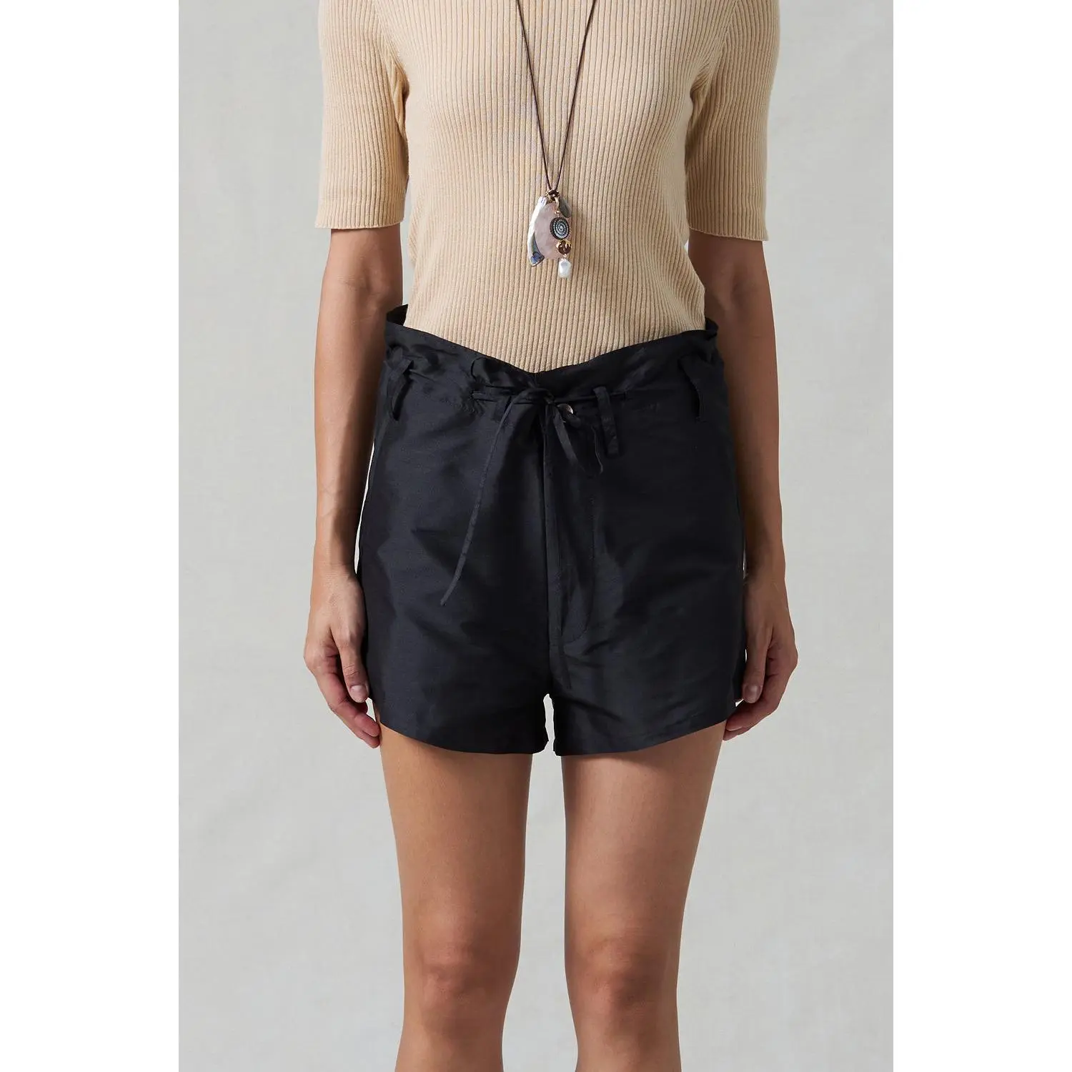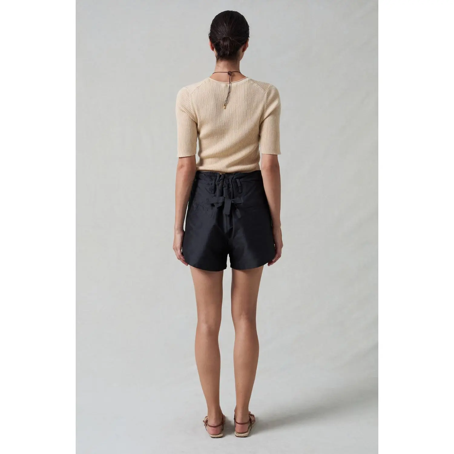 The Techno Taffeta trouser is reimagined in a shorter length for warmer days. The lightweight fabric with front and back ties ensure a comfortable fit.
