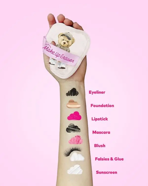 Erase all makeup with JUST WATER™ including waterproof. Our patented, water-activated, cloud-soft fibers gently & easily remove all makeup & sunscreen from pores. 2 in 1 benefit: one side erases makeup & one side exfoliates skin.