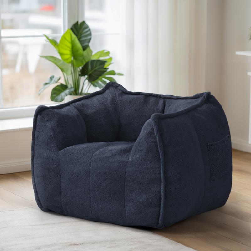 This bean bag chair is a cozy and practical addition to your home, crafted with premium soft teddy fabric that’s both durable, incredibly comfortable, and remarkably easy to clean. Its generously filled shape, packed with high-density foam blocks, provides exceptional body-hugging support and perfect contouring. Practical side pockets offer convenient storage for remotes, books, or snacks. Available in versatile shades like Khaki, Navy Blue, and Grey, it effortlessly complements any decor. Its wonderful stain resistance makes it perfect for living rooms, bedrooms, studies, and game rooms.