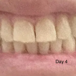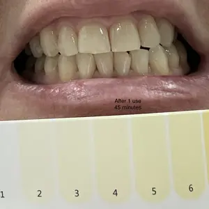 Used first two days in a row for 60 min each. Hard to get the strips to stay in place and work out bubbles around not so straight teeth. Moved a white level each day. Will keep up. Would be nice to have longer strips that grip to teeth faster and stay put.