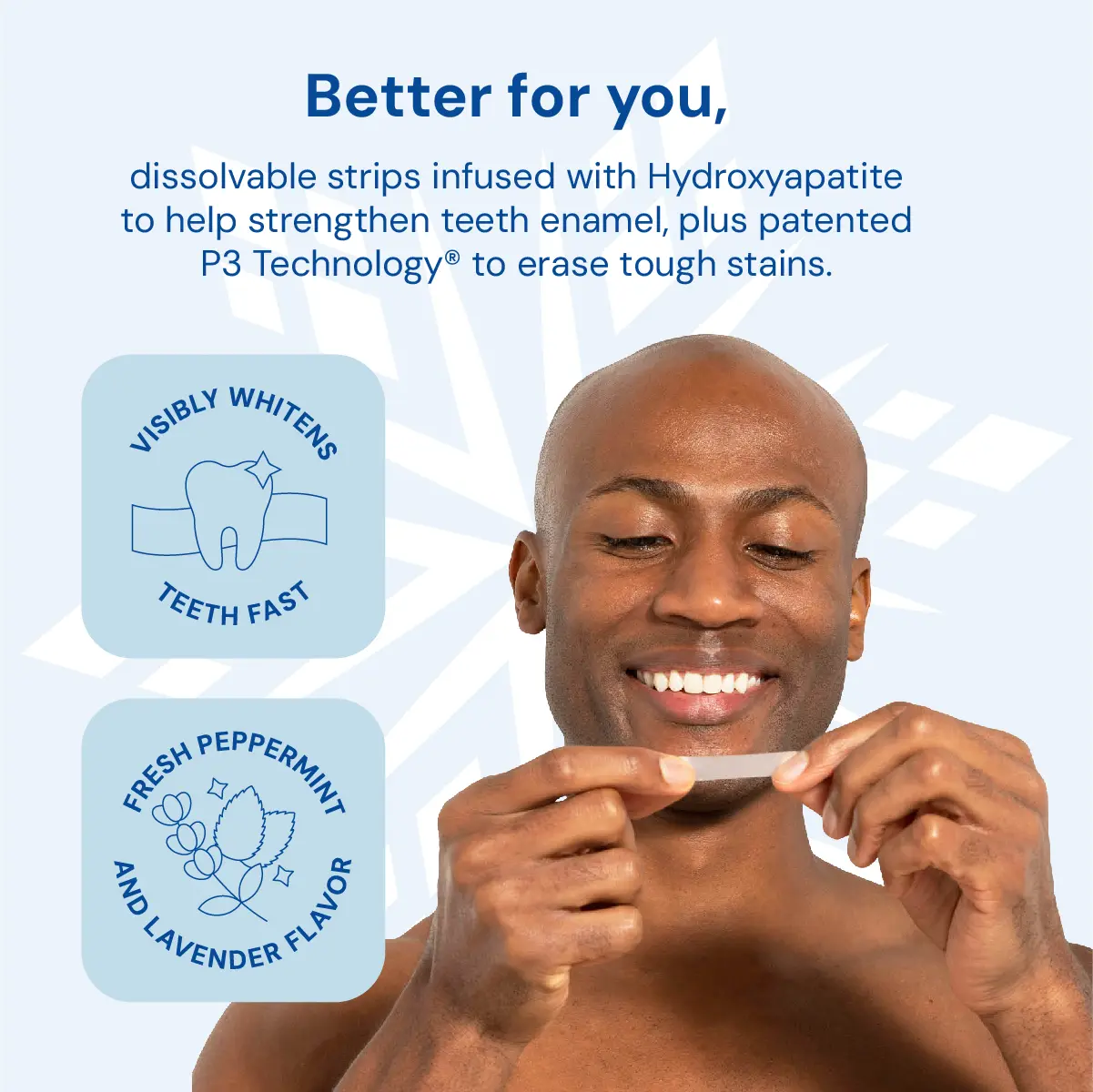 Our dissolving strips melt directly onto your teeth for an easy, mess-free whitening experience you can use at home or on the go in minutes. No trays. No plastic.