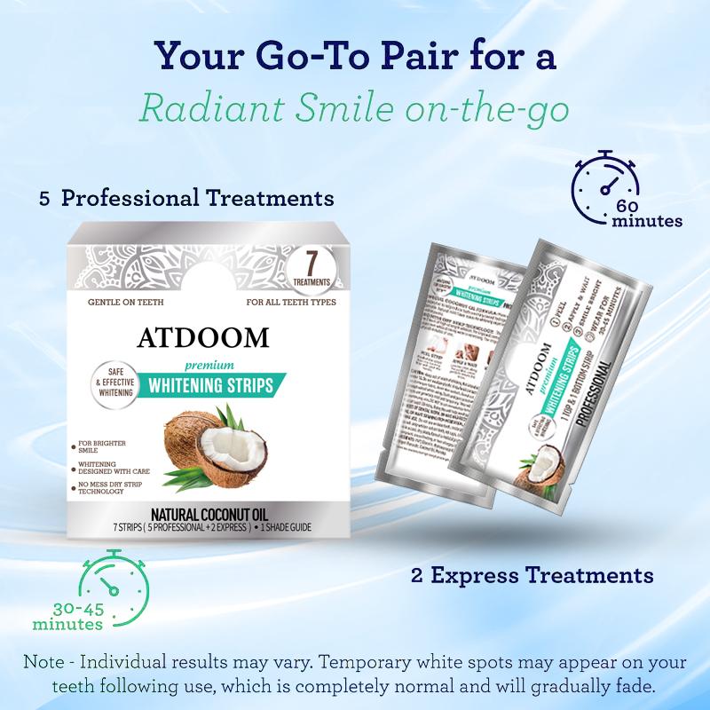 Suitable for all teeth: Coconut Teeth Whitening Strips, infused with natural coconut oil, are the ideal solution for whitening sensitive teeth and gums. They help reduce tooth and gum sensitivity caused by hydrogen peroxide. The pure coconut oil in the strips freshens breath and cleans teeth.