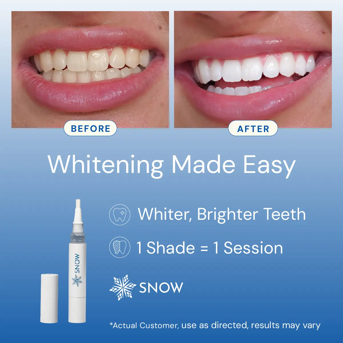 Expertly formulated by leading cosmetic dentists. We’re confident you’ll love your results, but individual outcomes may vary.