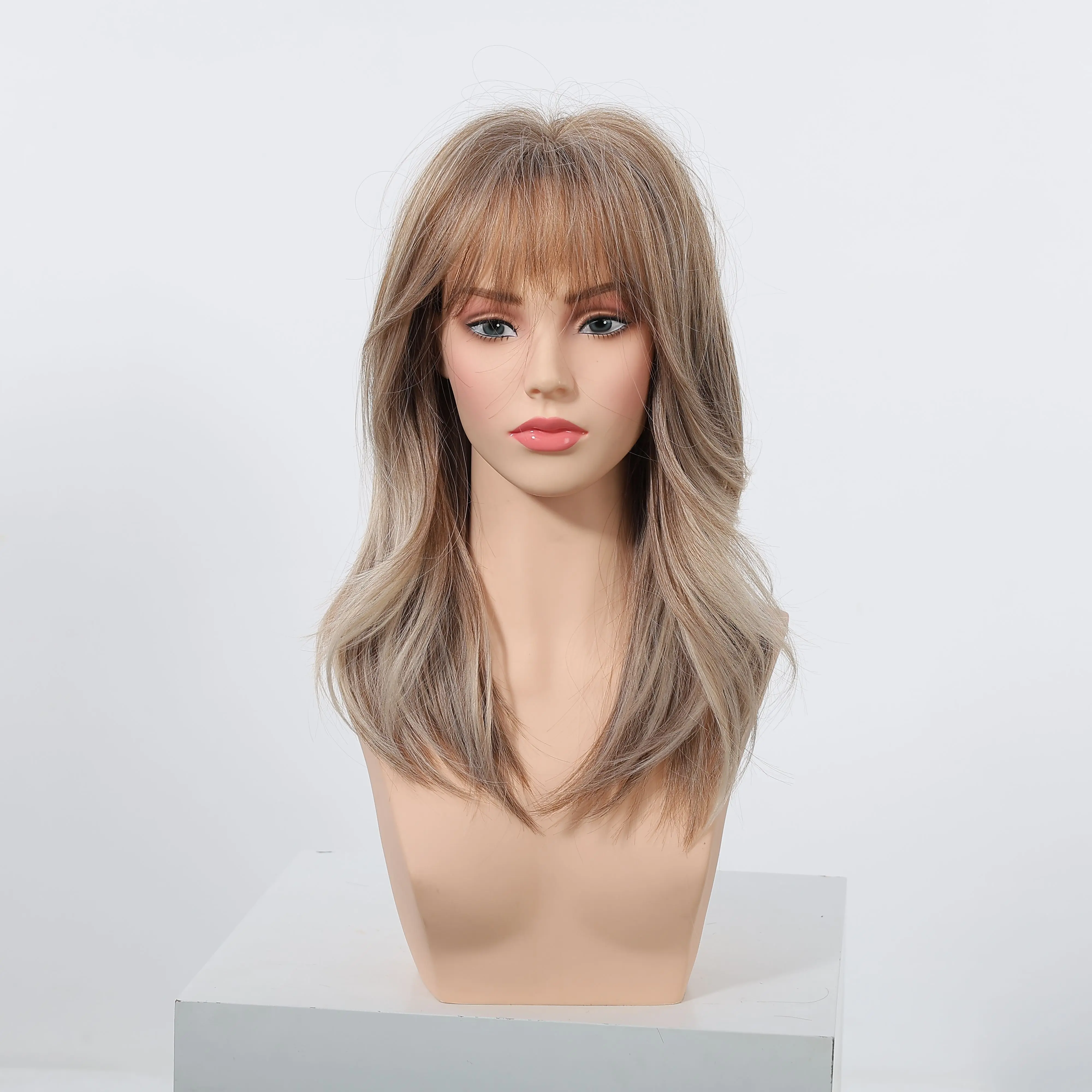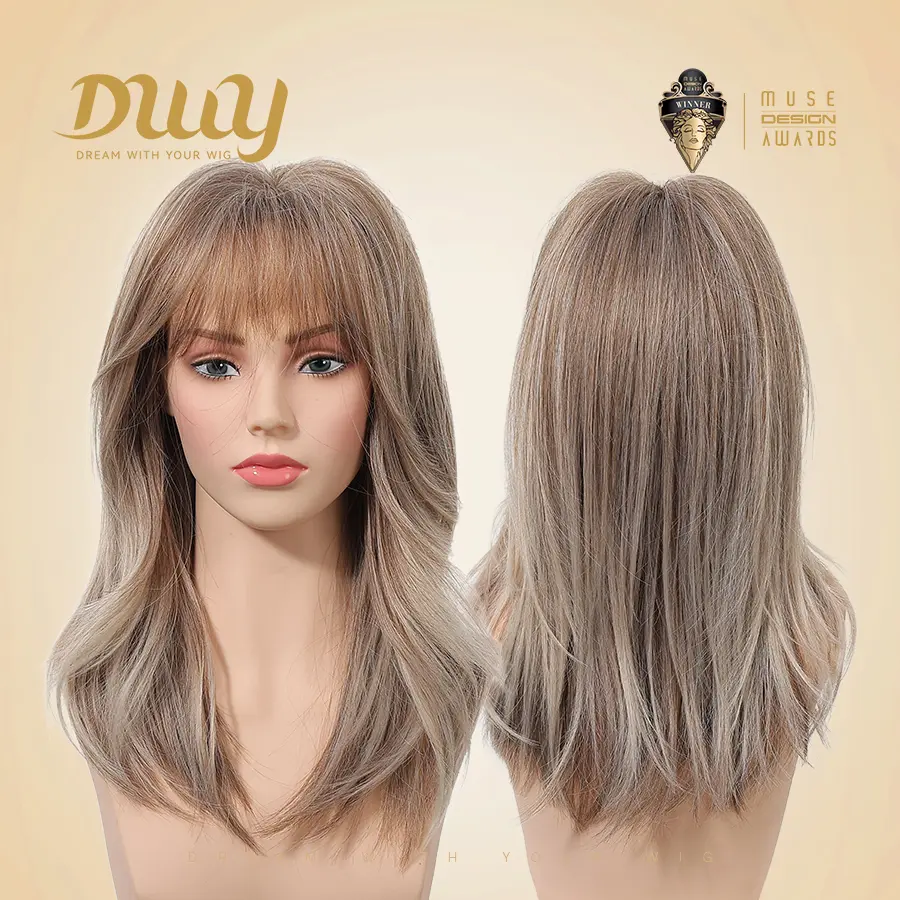 I LOVE THE WHITE GREY COLOR. LOVE THE 18 INCH LENGTH AMD THE CUT IS SO EASY AMD FLATTERING. I TRIMMED THE MIDDLE OF THE BANGS AS I AM VERY SHORT. NATURAL LOOKING FREE PART SCALP. SUPER SILKY FIBERS. LOW MAINTENANCE. lots of compliments. Wore as is right out of the box. TRIMMED BANGS LATER.