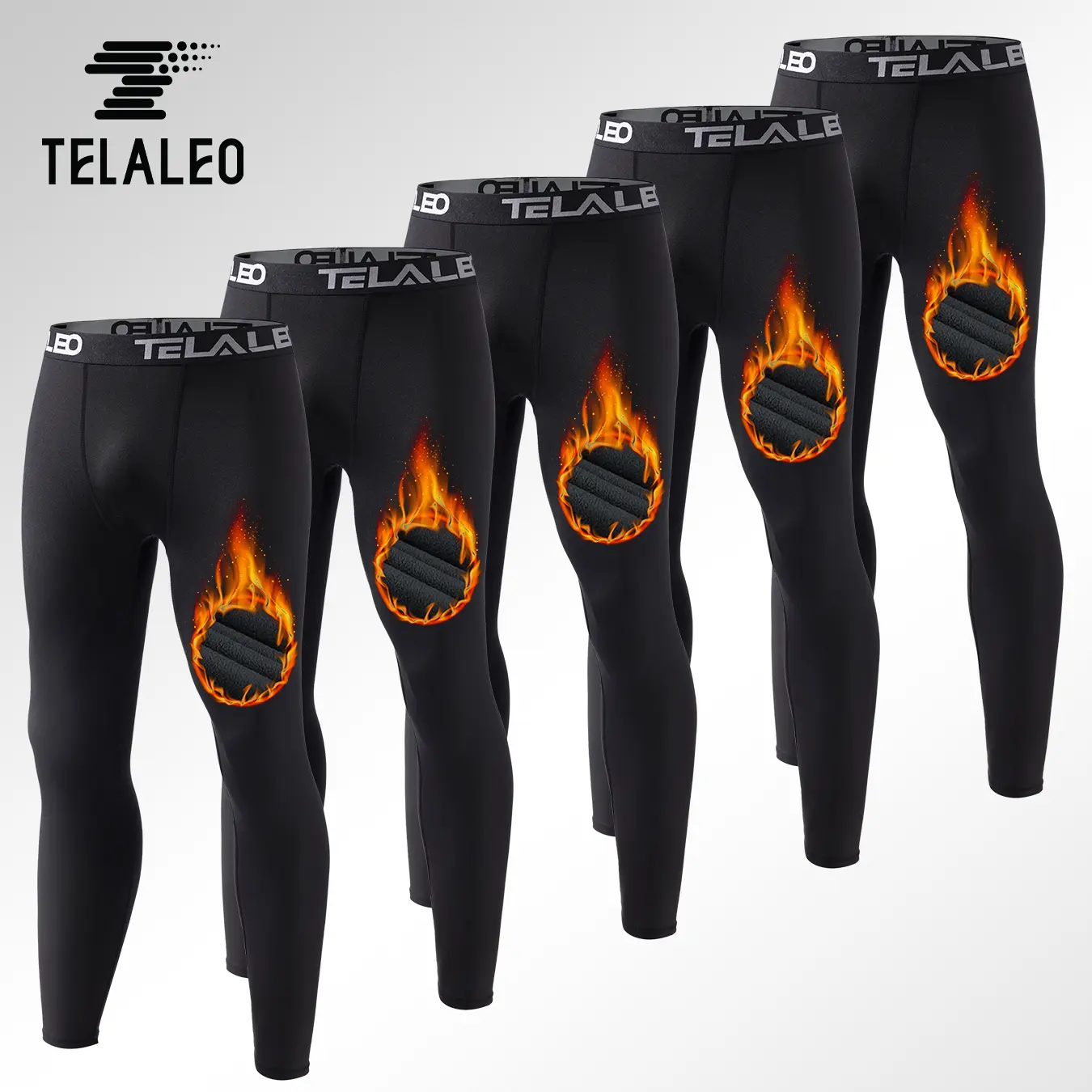 TELALEO 5 Pack Men's Thermal Compression Pants are perfect for cold weather. These fleece-lined sports tights offer excellent warmth and comfort. Ideal for athletic activities, they provide a snug fit. Made from polyester material, these leggings are versatile for various winter sports. Stay warm and perform at your best during chilly days.