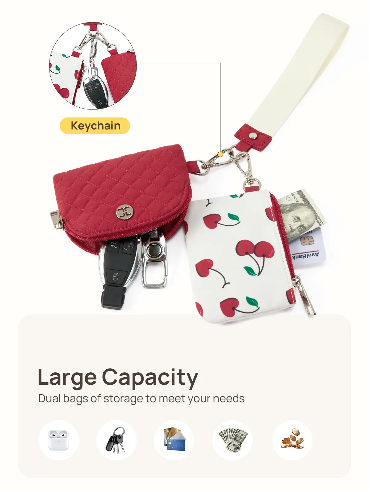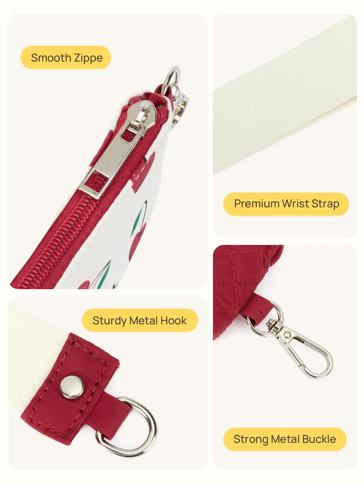 Crafted from durable, water-resistant fabric, this coin purse features a smooth zipper, sturdy metal buckle, and a soft nylon wrist strap for easy carrying.