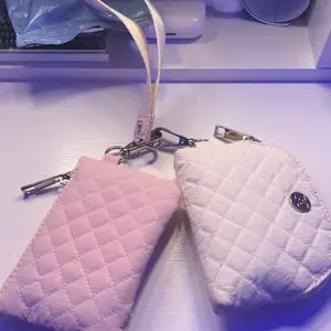 Available in square (4.9" x 0.2" x 3.4") and semicircular (5.1" x 0.4" x 3.9") sizes, this dual-pouch wallet is perfect for storing ID, cards, keys, change, or lipstick.