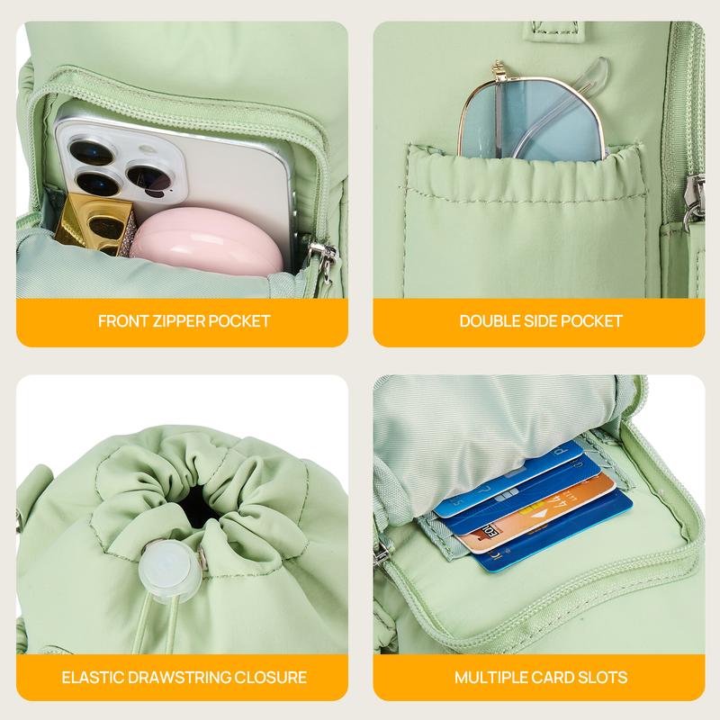 Cute bag ,good quality , fashionable . Fits your phone and water bottle. Perfect to use for a hike or if you’re going on vacation like a cruise. Great travel bag . Only downfall was it was delayed being delivered .