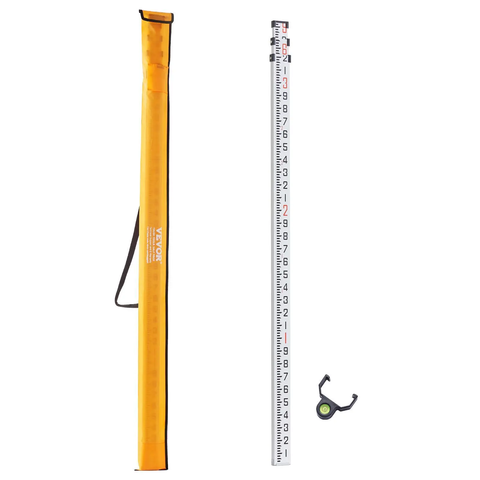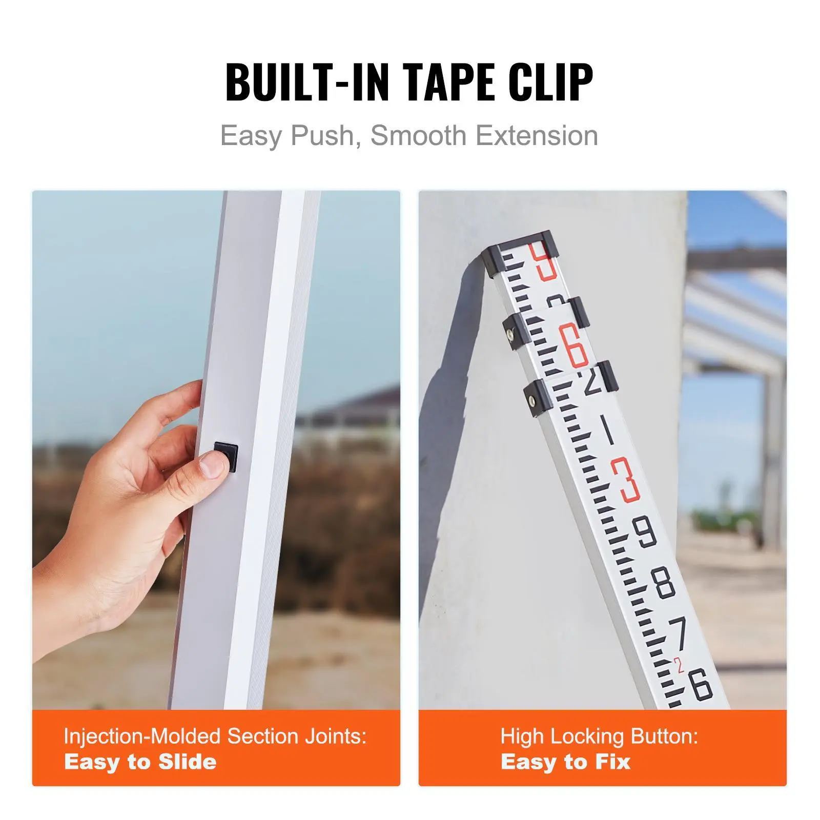 • Expandable Features: This leveling rod has 3 adjustable telescopic sections, extending up to 9ft/2.74m. The rectangular shape ensures ease of operation, aligning perfectly parallel to surfaces. When not in use, it can be collapsed for compact storage.
