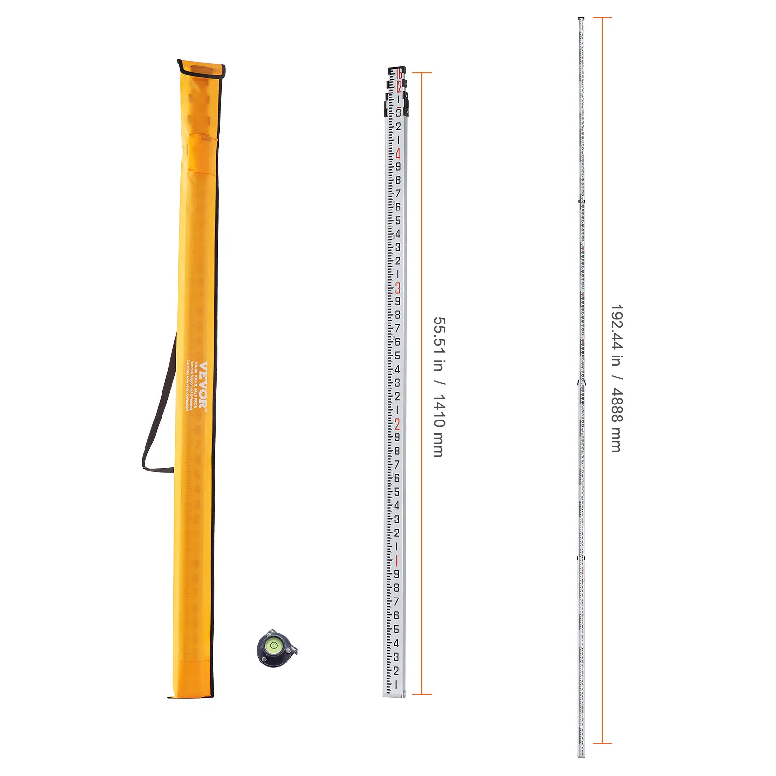 • Expandable Functionality: This leveling rod is equipped with 4 adjustable telescopic sections, extending up to 16ft/4.88m. Designed in a rectangular shape, it ensures ease of operation and alignment with surfaces, collapsing for compact storage when not in use.