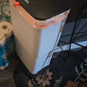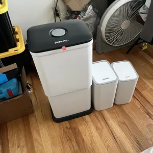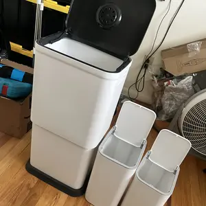 Absolutely love all 3 Trash cans. The bigger one makes it easy to wheel up next to me, so I can as I’m making dinner. The smaller ones are perfect for the bathroom. Having kids on them stops my dogs from getting into the trash.
