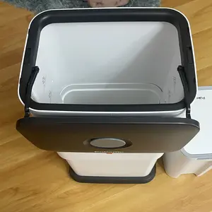 These are cheap Temo quality junk. The big can is a pain to get lid off to put bag in it. It does not lock at top. It has a red cheap pull tab.