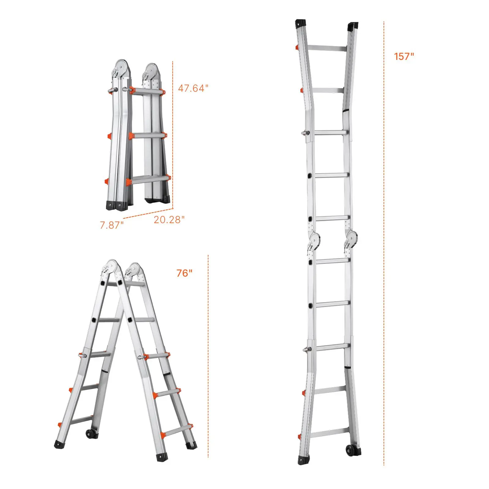 • Versatile Ladder: This telescoping a frame ladder adapts to various needs, easily transitioning between different configurations. With extendable legs reaching up to 180° and a maximum height of 9.5ft / 2880 mm, it’s perfect for maintenance or attic cleaning.