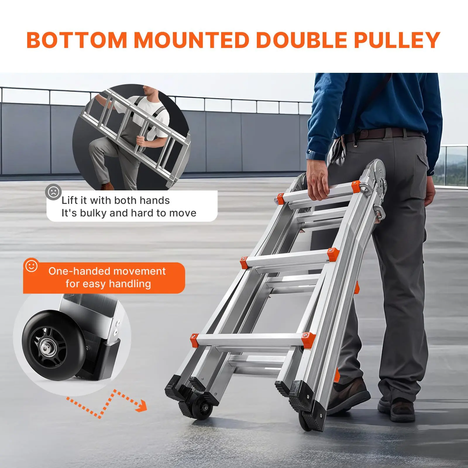• Easy to Move: The base features dual wheels, making it easy to transport with one hand, solving the hassle of lifting traditional ladders and making your experience more enjoyable.