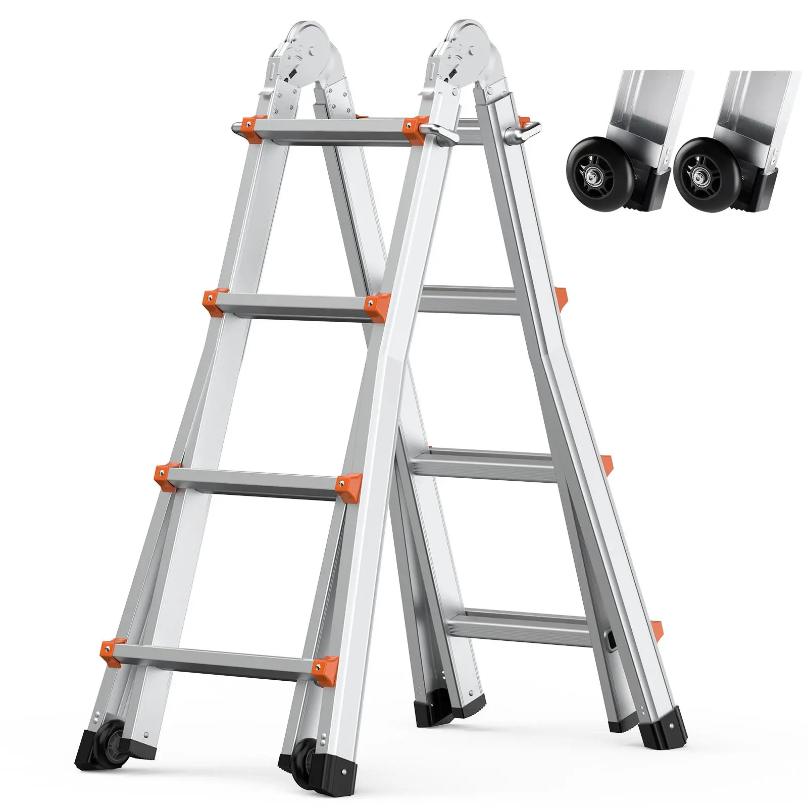 • Versatile Ladder: This telescoping a frame ladder adapts to various needs, easily transitioning between different configurations. With extendable legs reaching up to 180° and a maximum height of 15 ft / 4670 mm, it’s perfect for maintenance or attic cleaning.