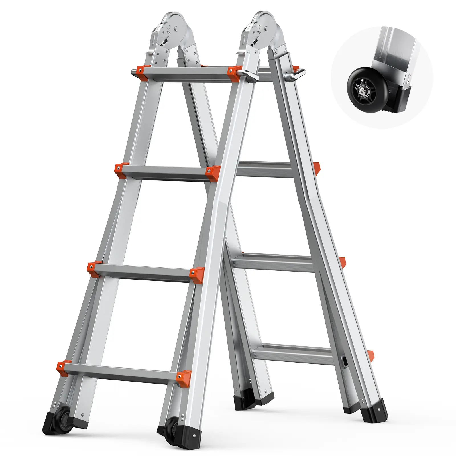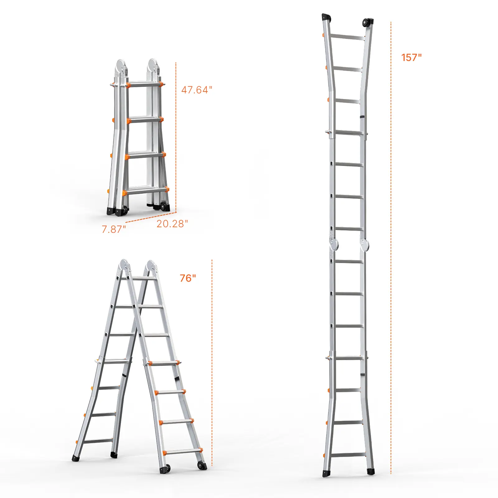 • Versatile Ladder: This telescoping a frame ladder adapts to various needs, easily transitioning between different configurations. With extendable legs reaching up to 180° and a maximum height of 13 ft / 4000 mm, it’s perfect for maintenance or attic cleaning.