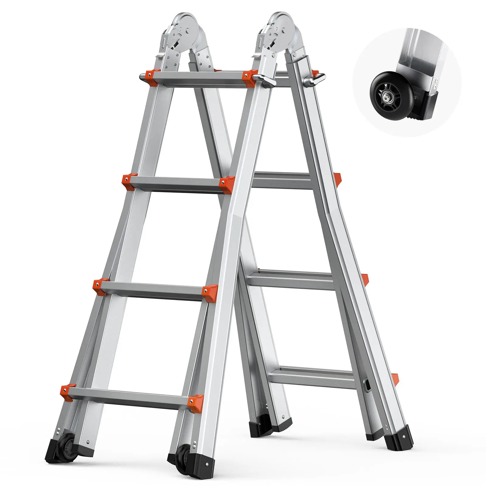 • Versatile Ladder: This telescoping a frame ladder adapts to various needs, easily transitioning between different configurations. With extendable legs reaching up to 180° and a maximum height of 13 ft / 4000 mm, it’s perfect for maintenance or attic cleaning.